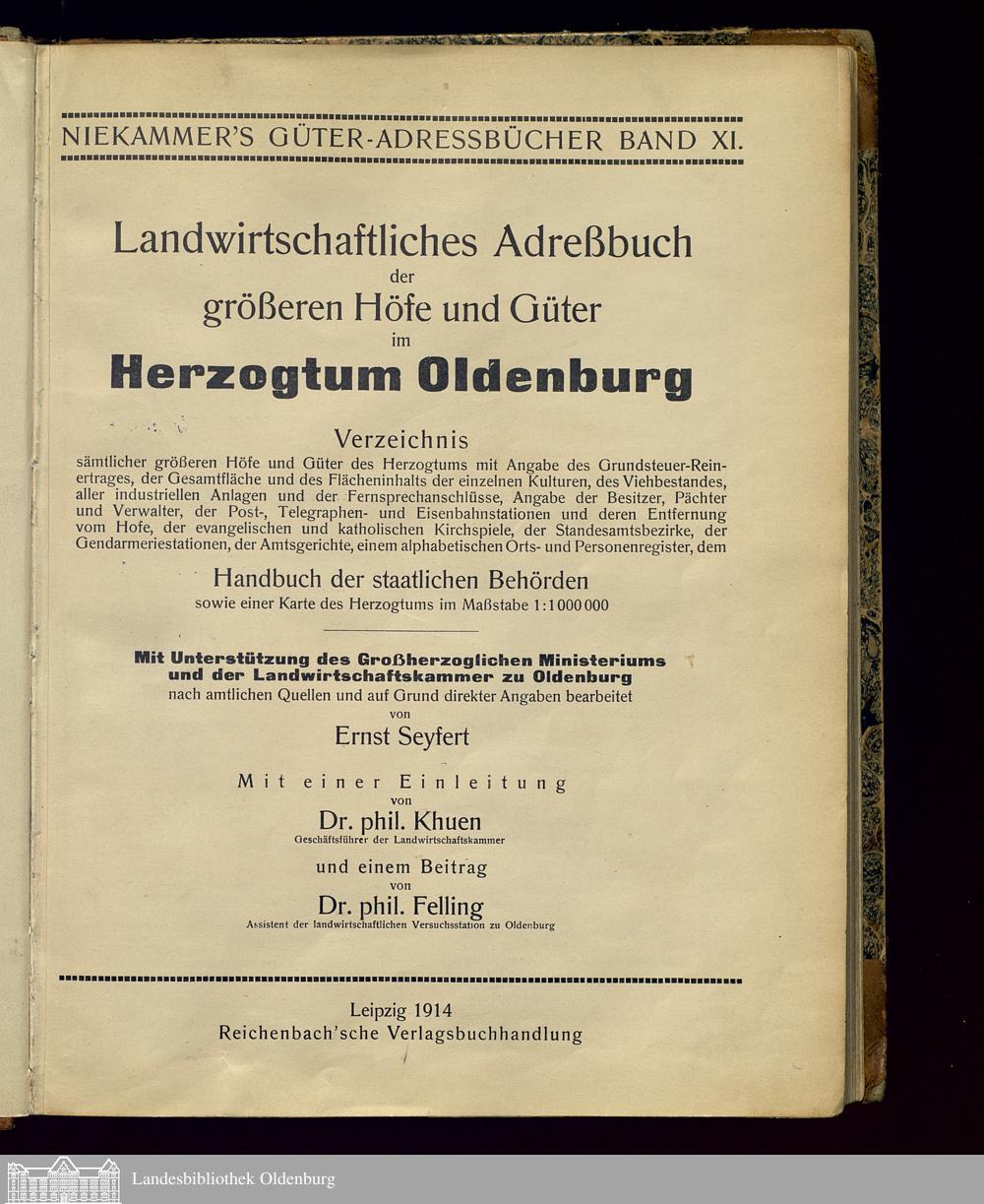 Verzeichnis der größeren Höfe uind Güter im Herzogtum Oldenburg