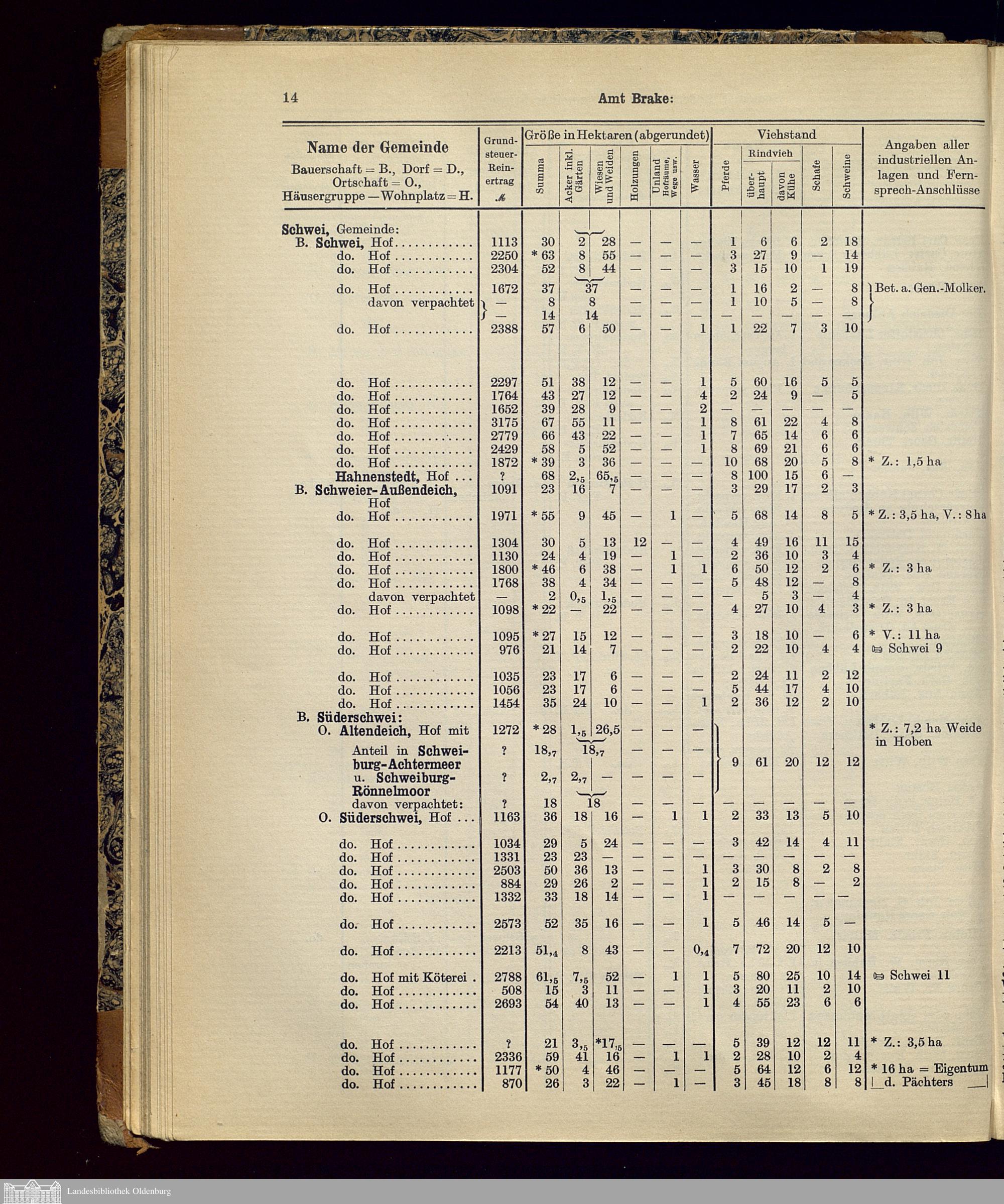 Verzeichnis der größeren Höfe uind Güter im Herzogtum Oldenburg