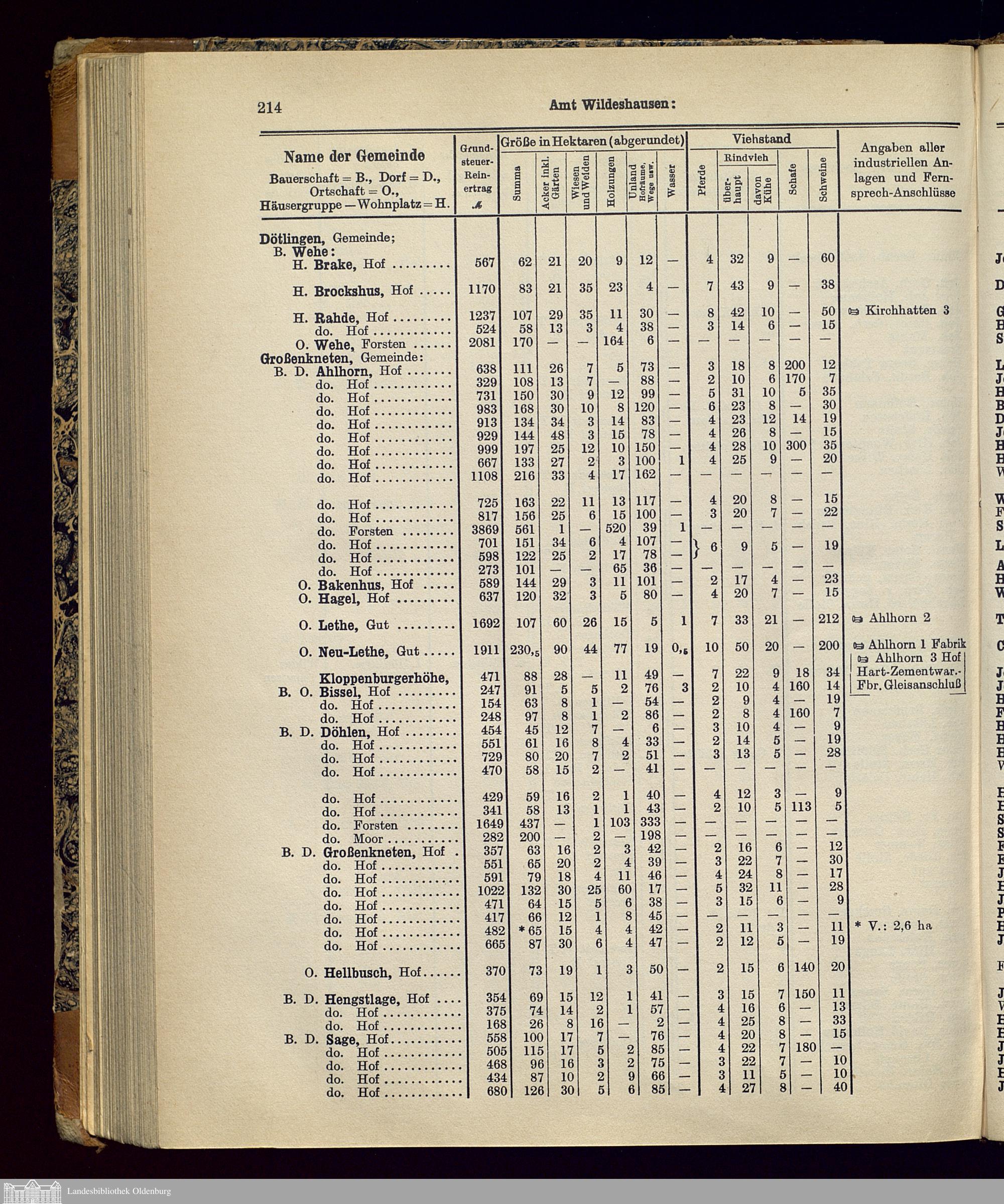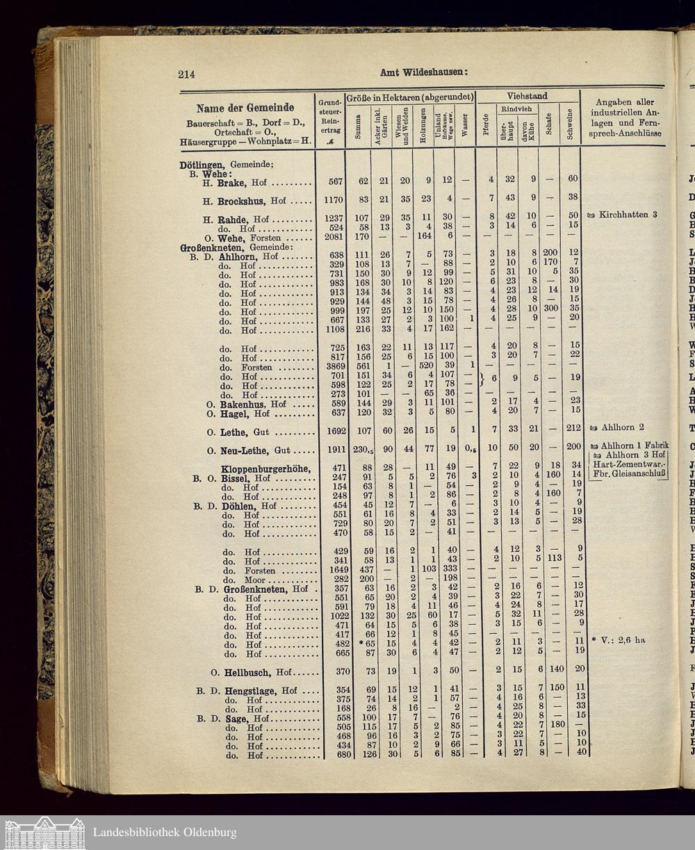 Verzeichnis der größeren Höfe uind Güter im Herzogtum Oldenburg