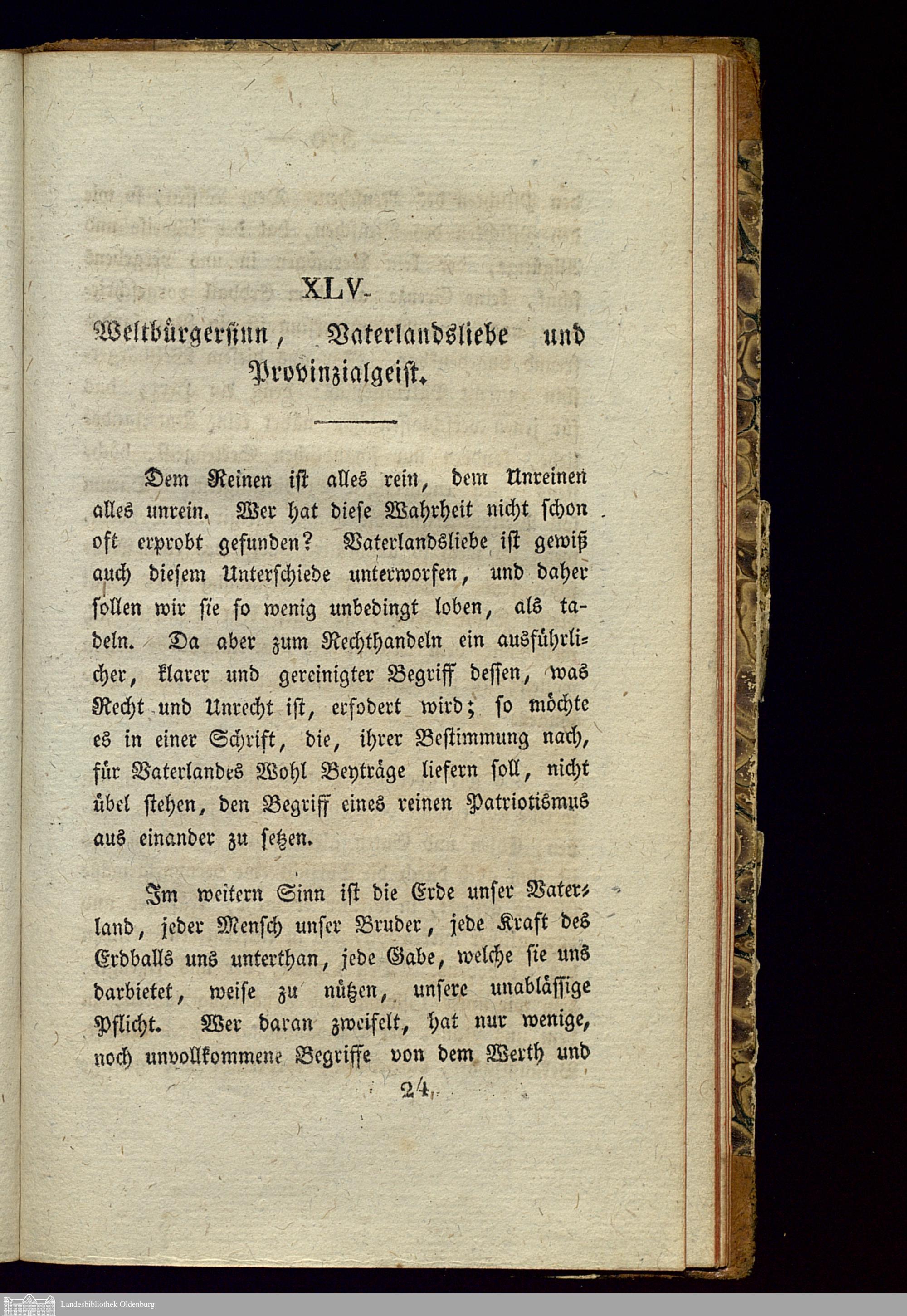 XLV. Weltbürgersinn, Vaterlandsliebe und Provinzialgeist.