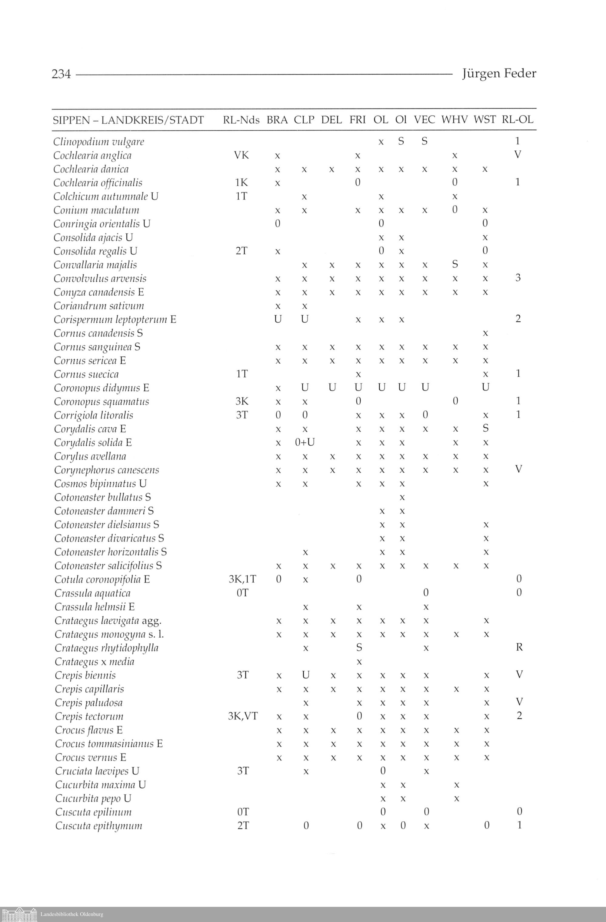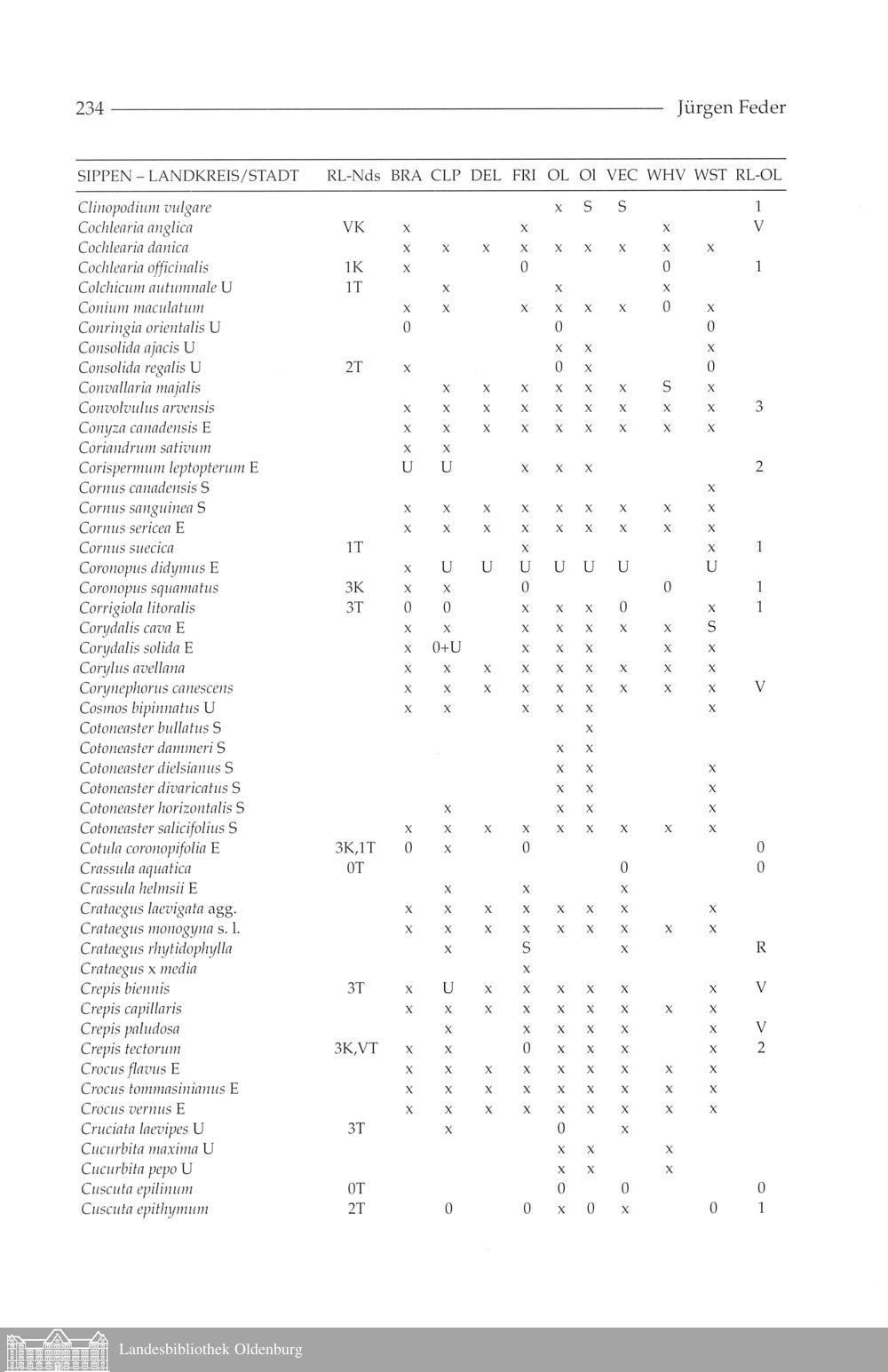 Jürgen Feder: Florenliste und Rote Liste der Farn- und Blütenpflanzen des Oldenburger...