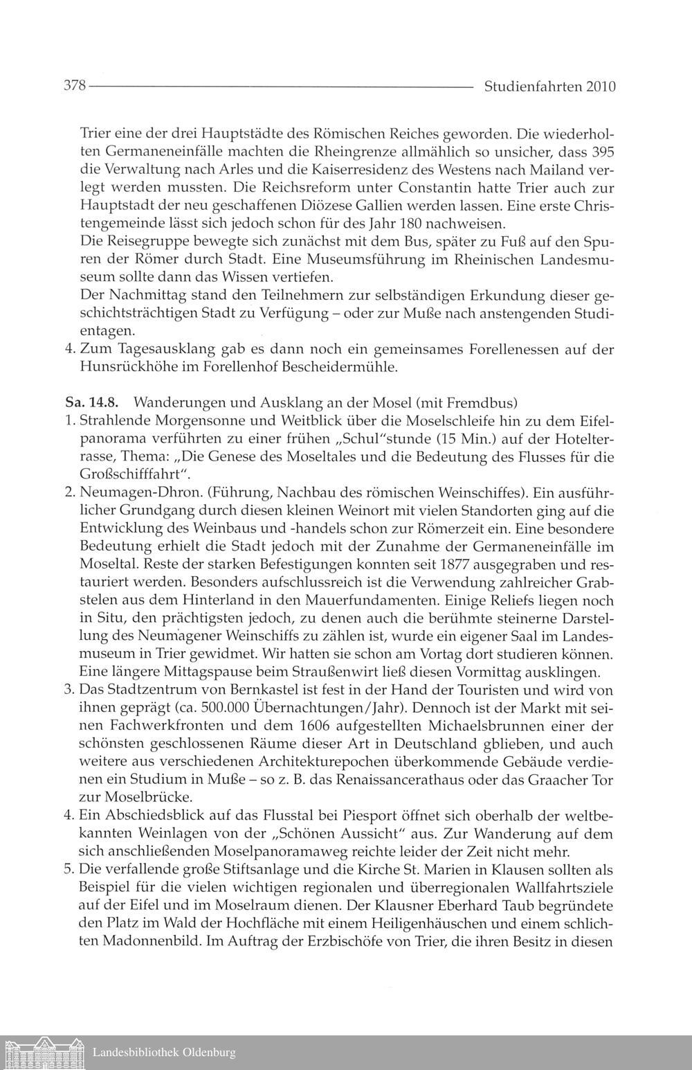 Übersicht über die Studienfahrten im Jahre 2010