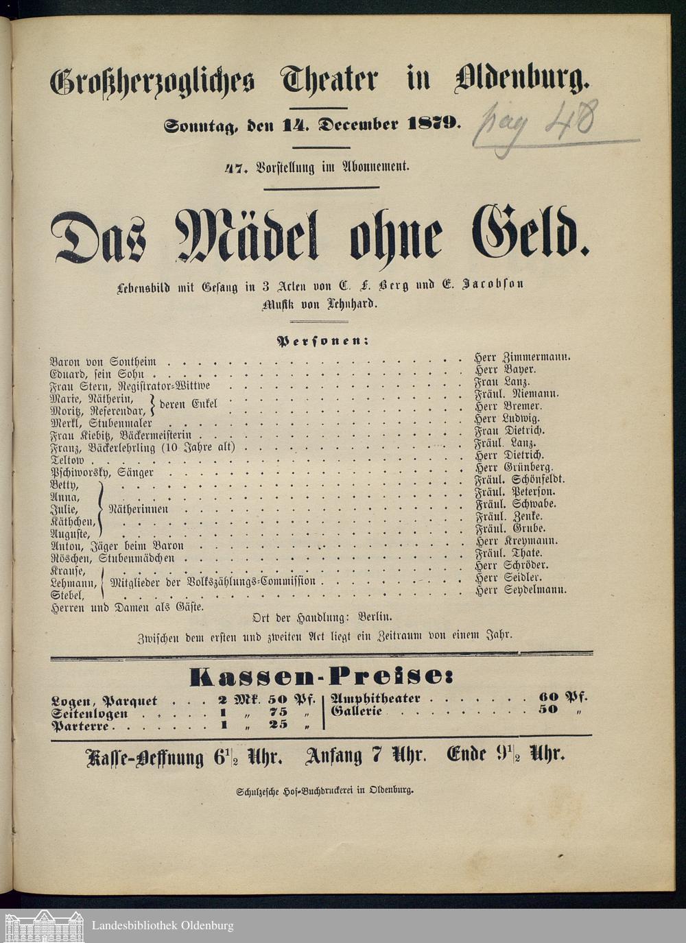 14.12.1879 - O.F. Berg [Ottocar-Franz Ebersberg] und Eduard Jacobson: Das Mädel ohne...