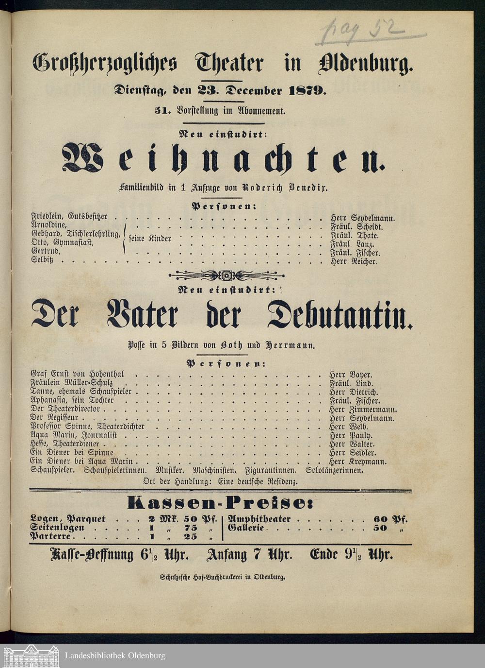 23.12.1879 - Roderich Benedix: Weihnachten; Louis Schneider und Bernhard Anton Herrmann:...