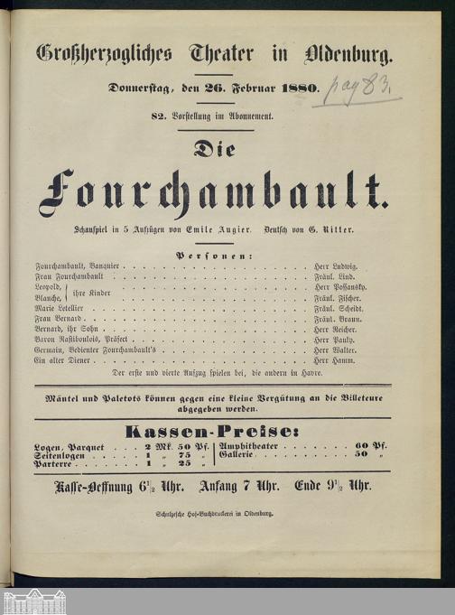 26.02.1880 - Emile Augier / Gottlieb Ritter [Theophil Zollig] (Bearb.): Die Four...