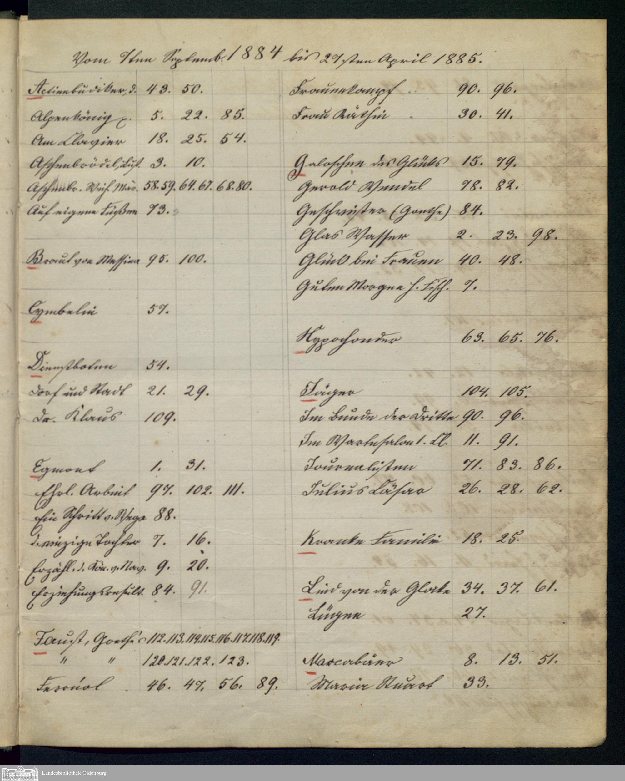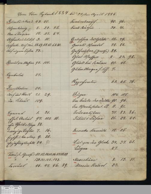 Vom 7ten Septemb.1884 bis 29. April 1885.