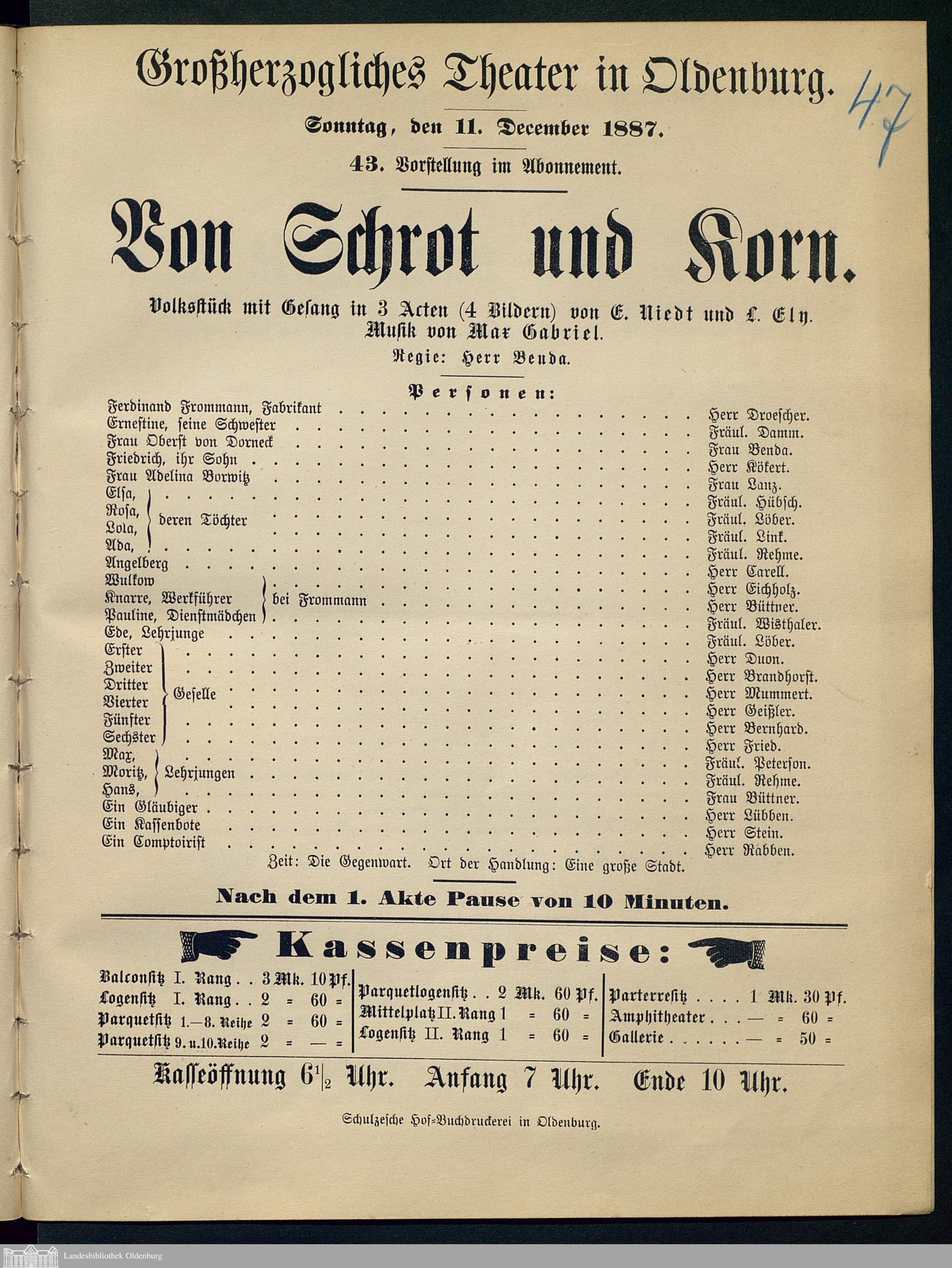 11.12.1887 - Ernst Niedt und Leopold Ely: Von Schrot und Korn.