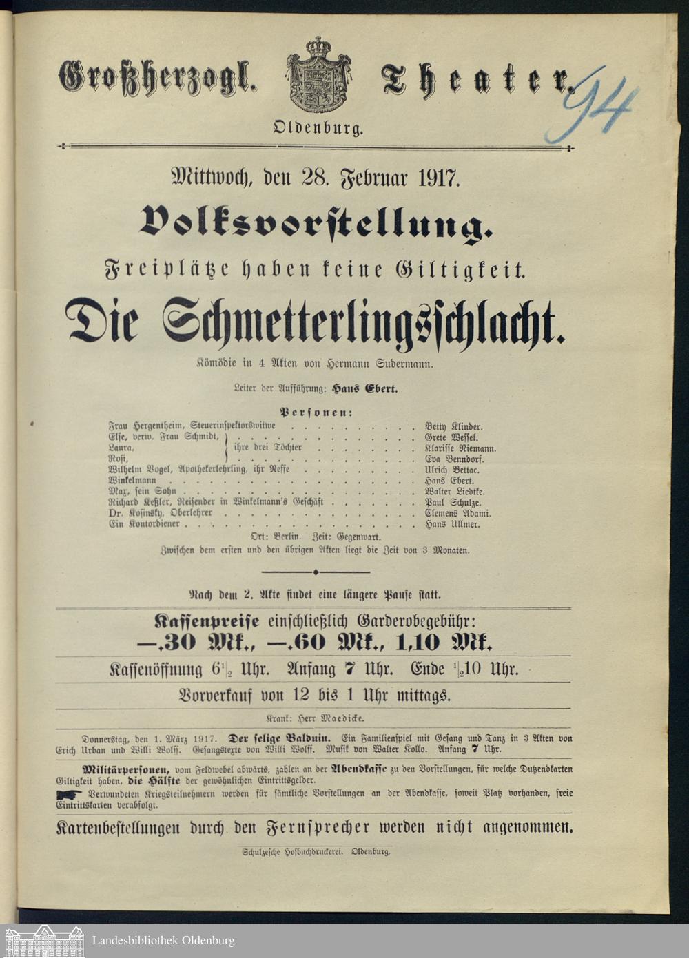 28.02.1917 - Hermann Sudermann: Die Schmetterlingsschlacht.