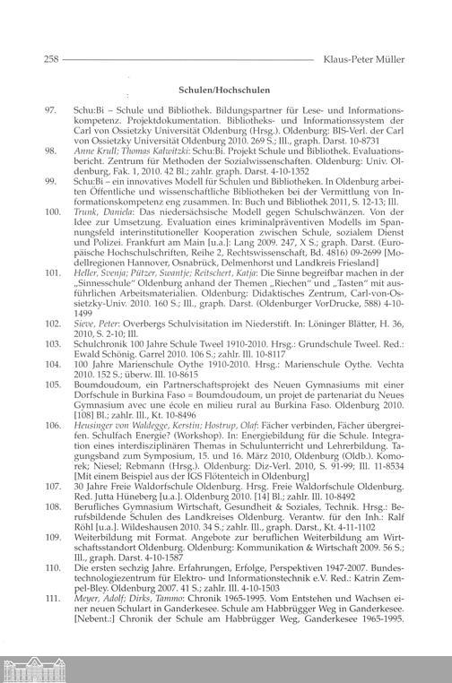 Klaus-Peter Müller: Oldenburgische Bibliographie 2010. Mit Nachträgen aus den vorhergehenden...