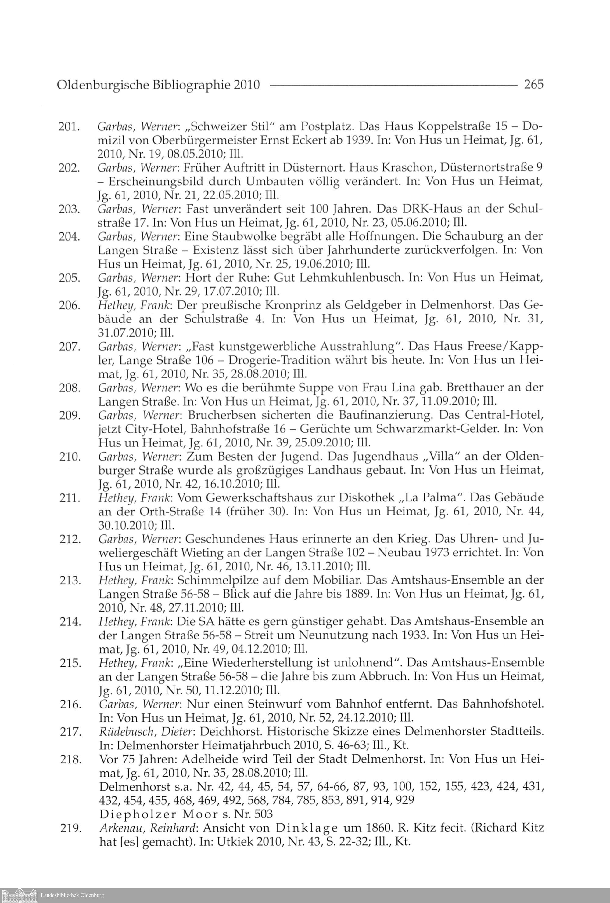 Klaus-Peter Müller: Oldenburgische Bibliographie 2010. Mit Nachträgen aus den vorhergehenden...
