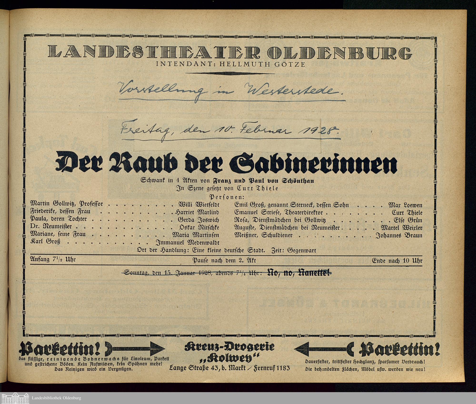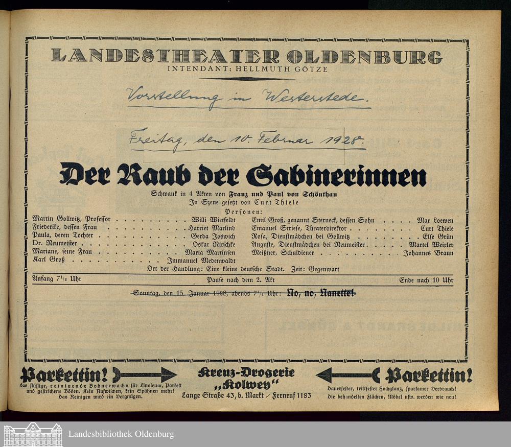10.02.1928 - Franz von Schönthan und Paul von Schönthan: Der Raub der Sabinerinnen....