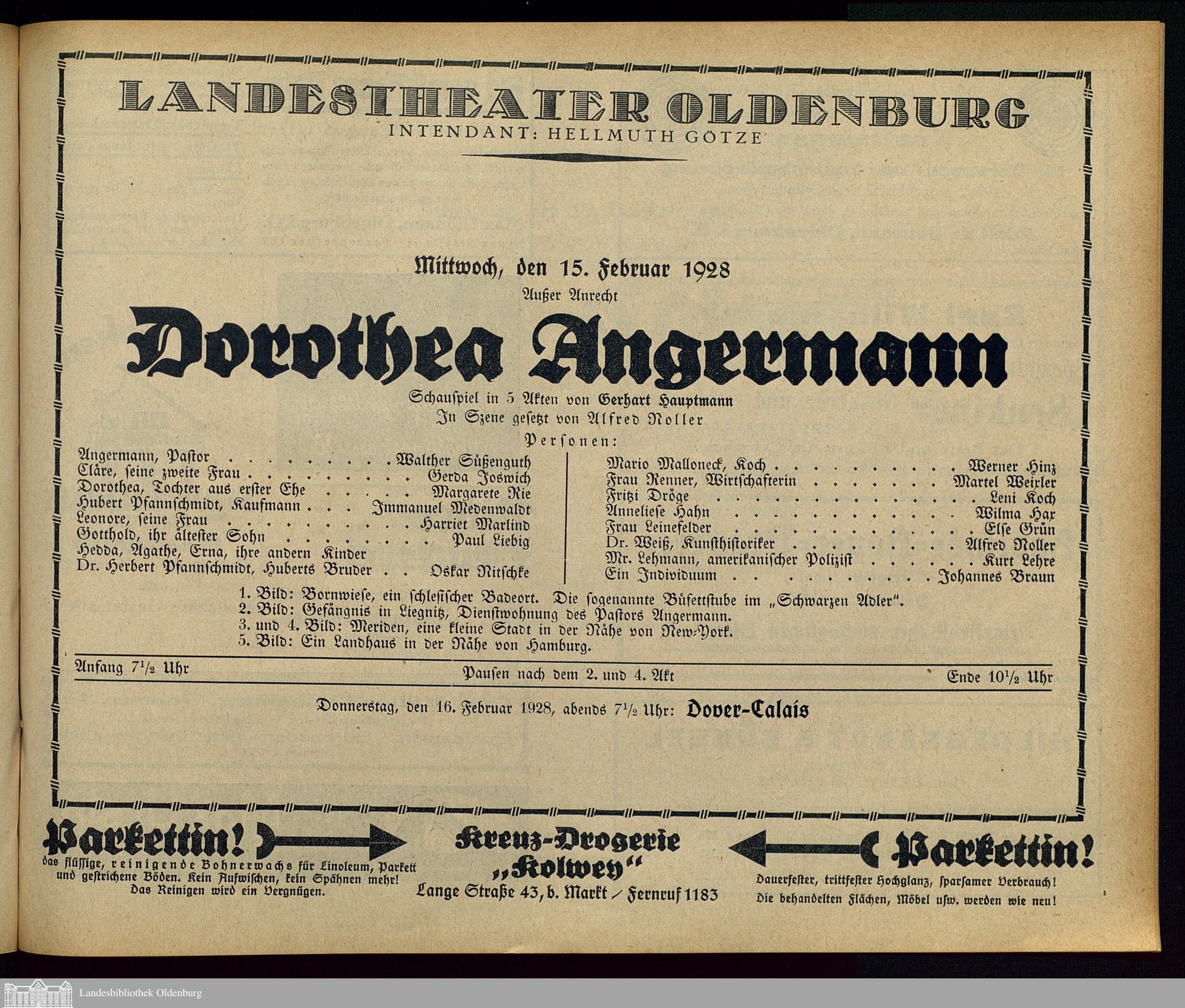 15.02.1928 - Gerhart Hauptmann: Dorothea Angermann.