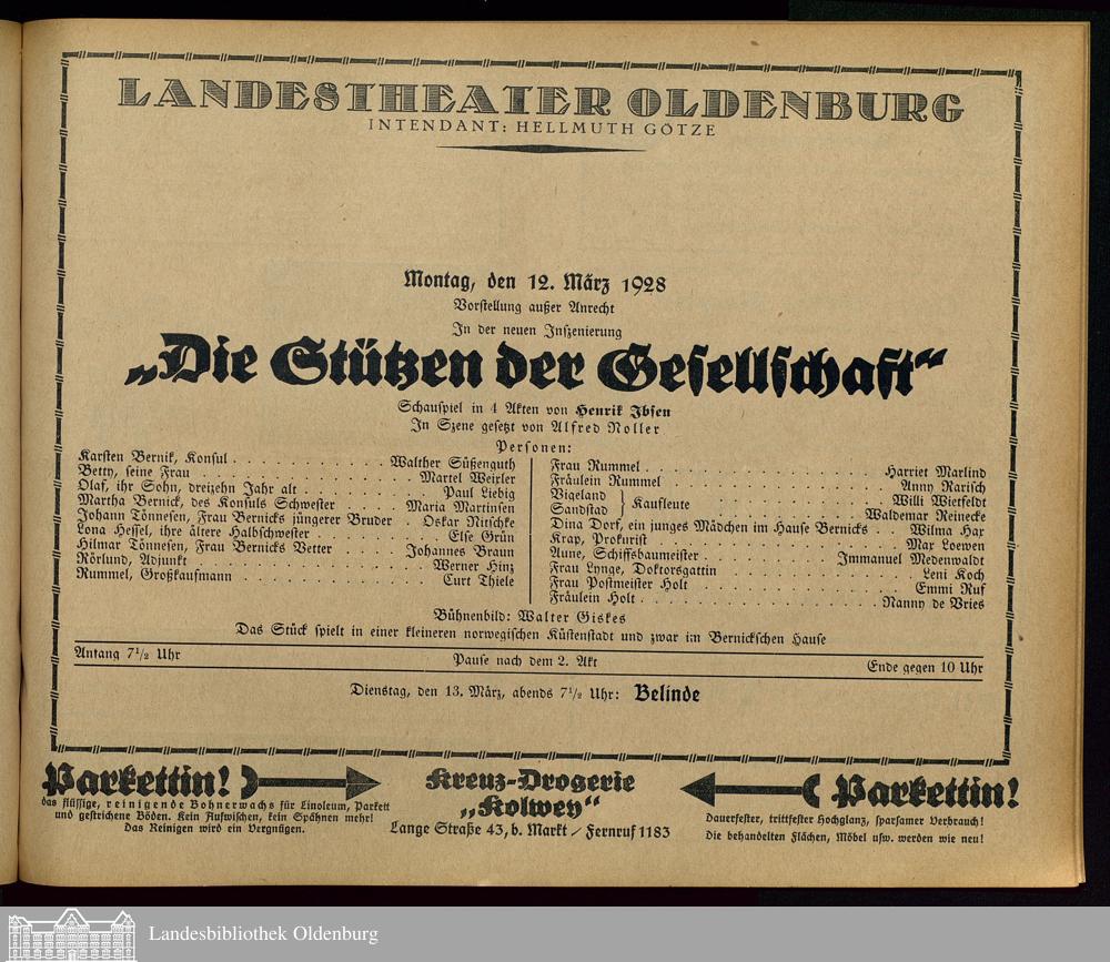 12.03.1928 - Henrik Ibsen: "Die Stützen der Gesellschaft".