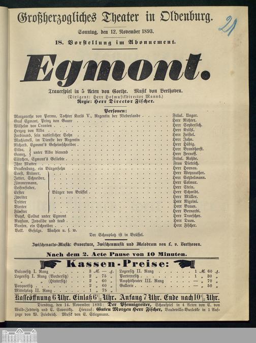 12.11.1893 - Johann Wolfgang von Goethe: Egmont.