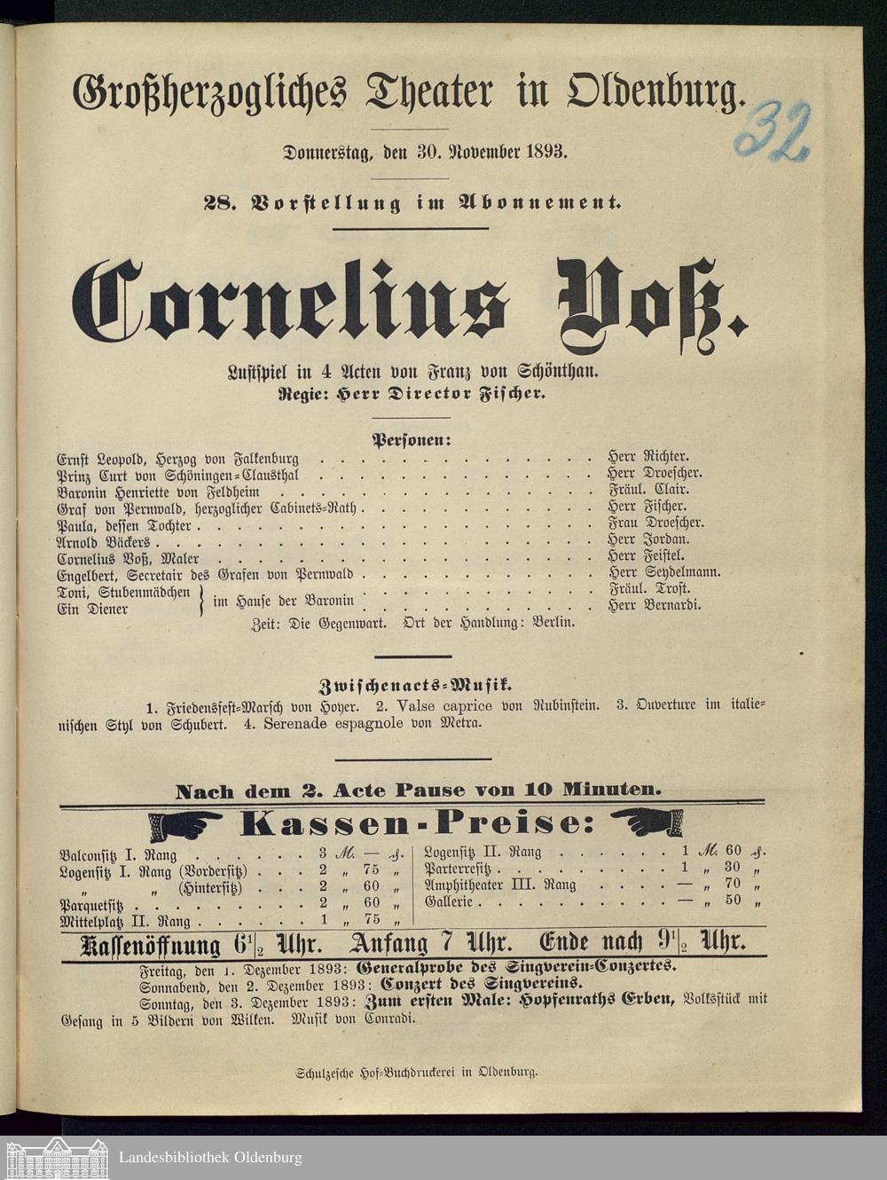 30.11.1893 - Franz von Schönthan: Cornelius Voß.