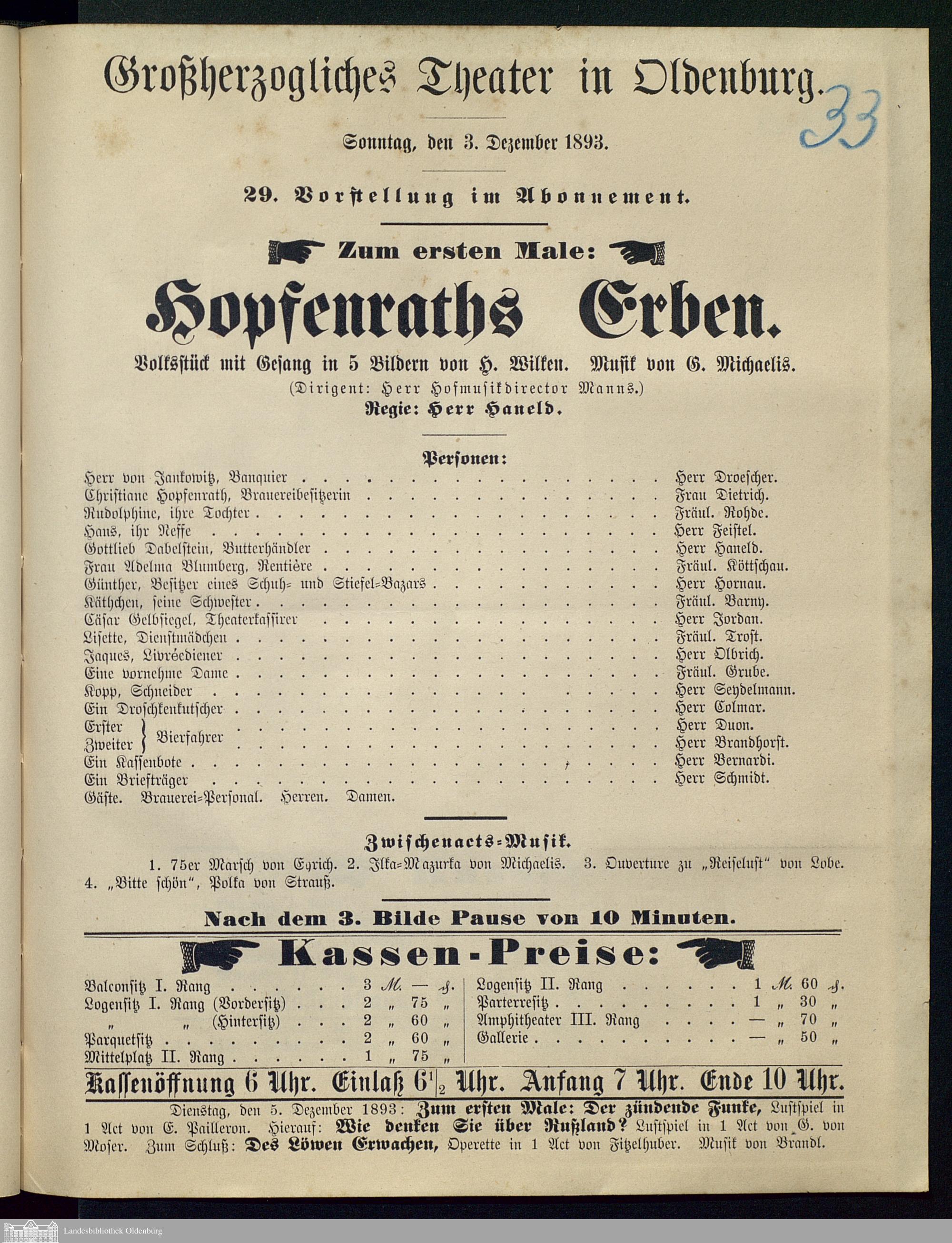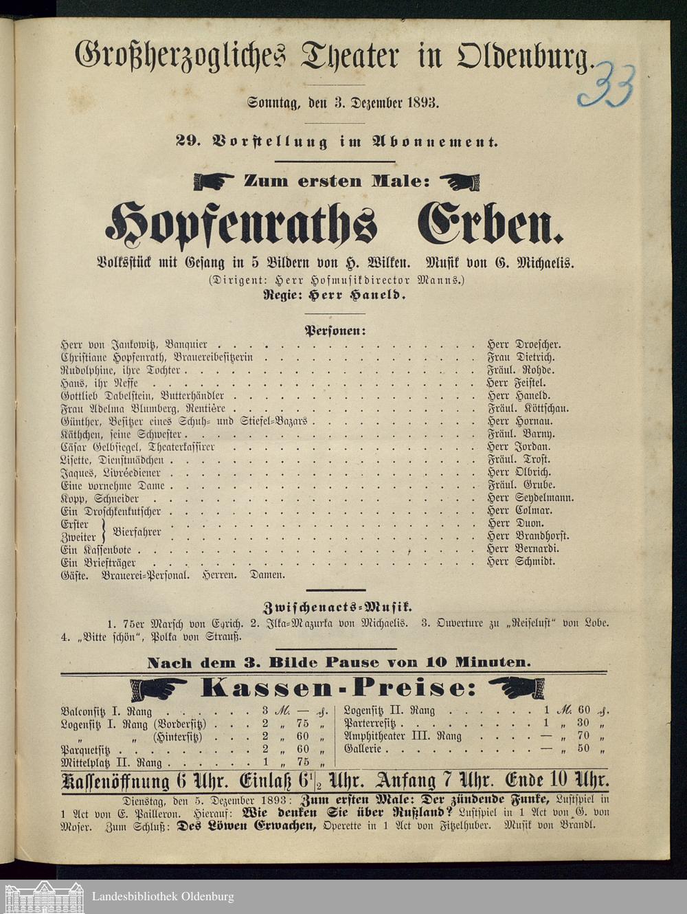 03.12.1893 - Heinrich Wilken: Hopfenraths Erben.