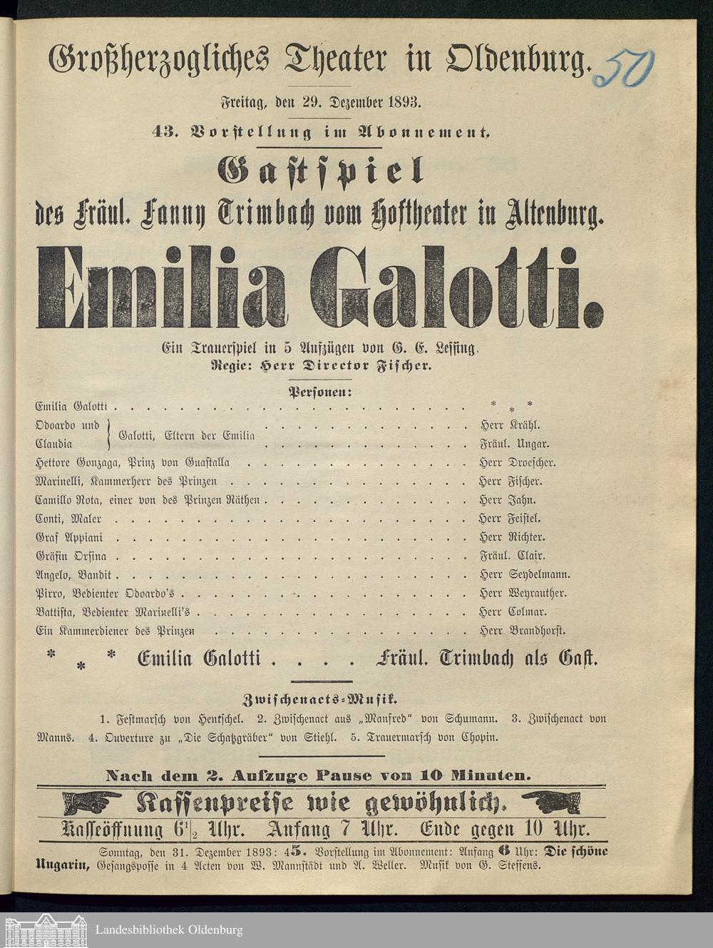 29.12.1893 - Gotthold Ephraim Lessing: Emilia Galotti.