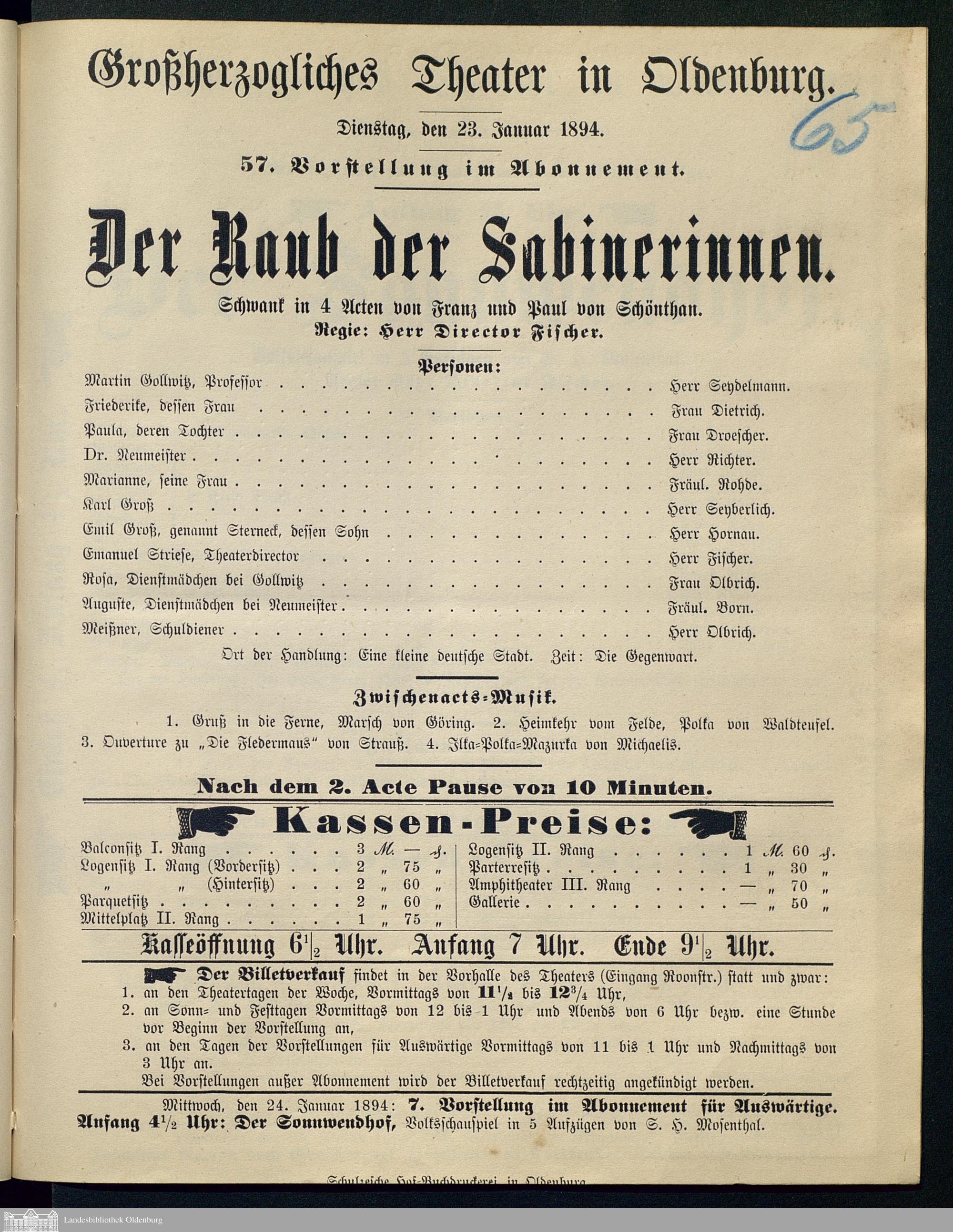 23.01.1894 - Franz von Schönthan und Paul von Schönthan: Der Raub der Sabinerinn...