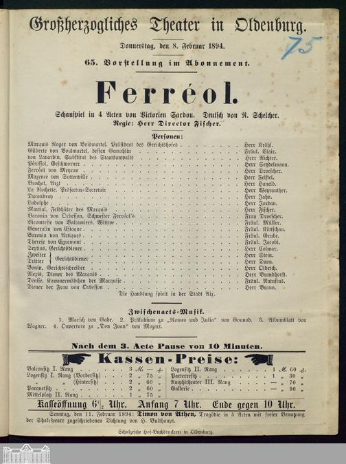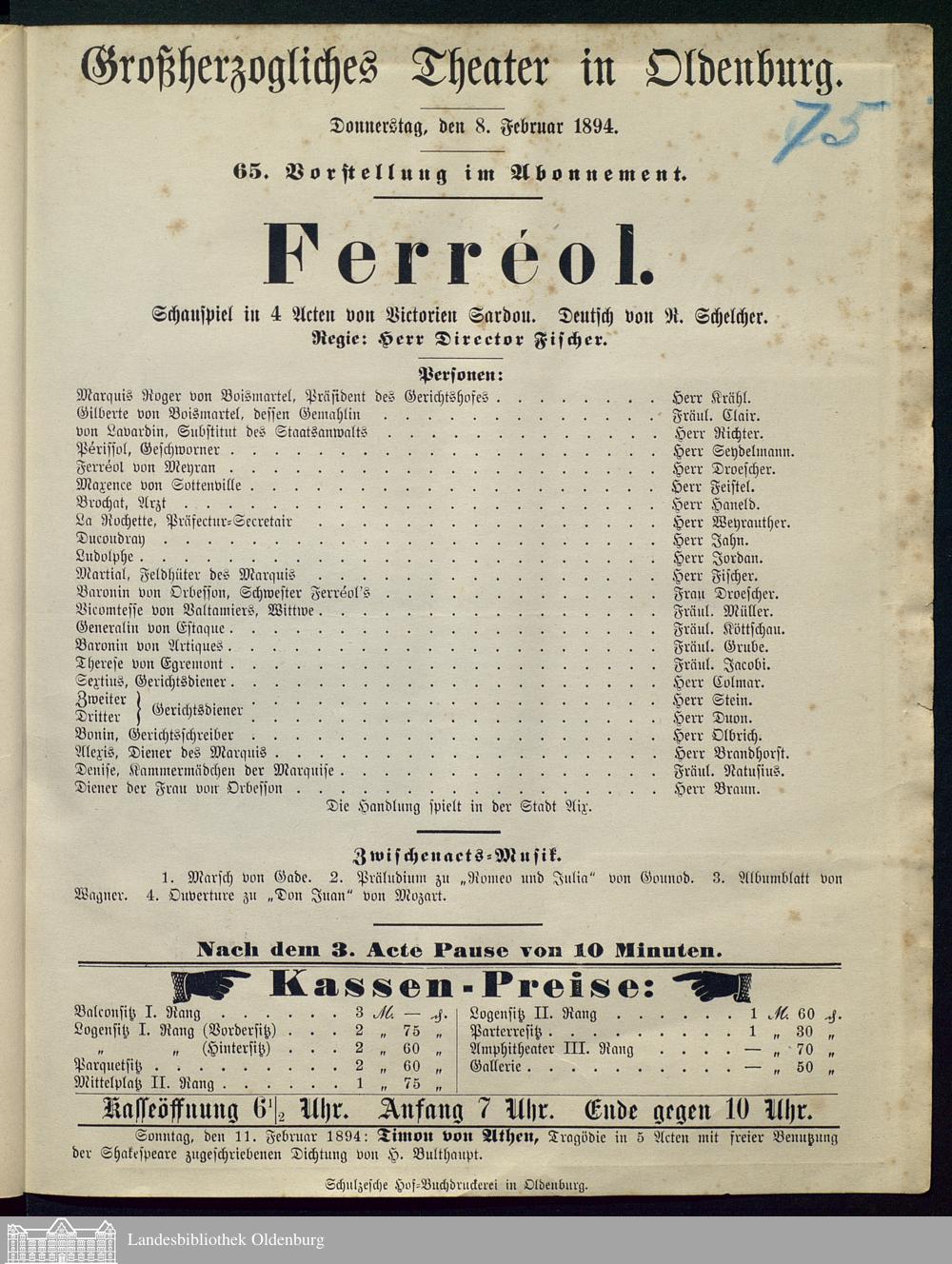 08.02.1894 - Victorien Sardou / R. Schelcher (Bearb.): Ferréol.