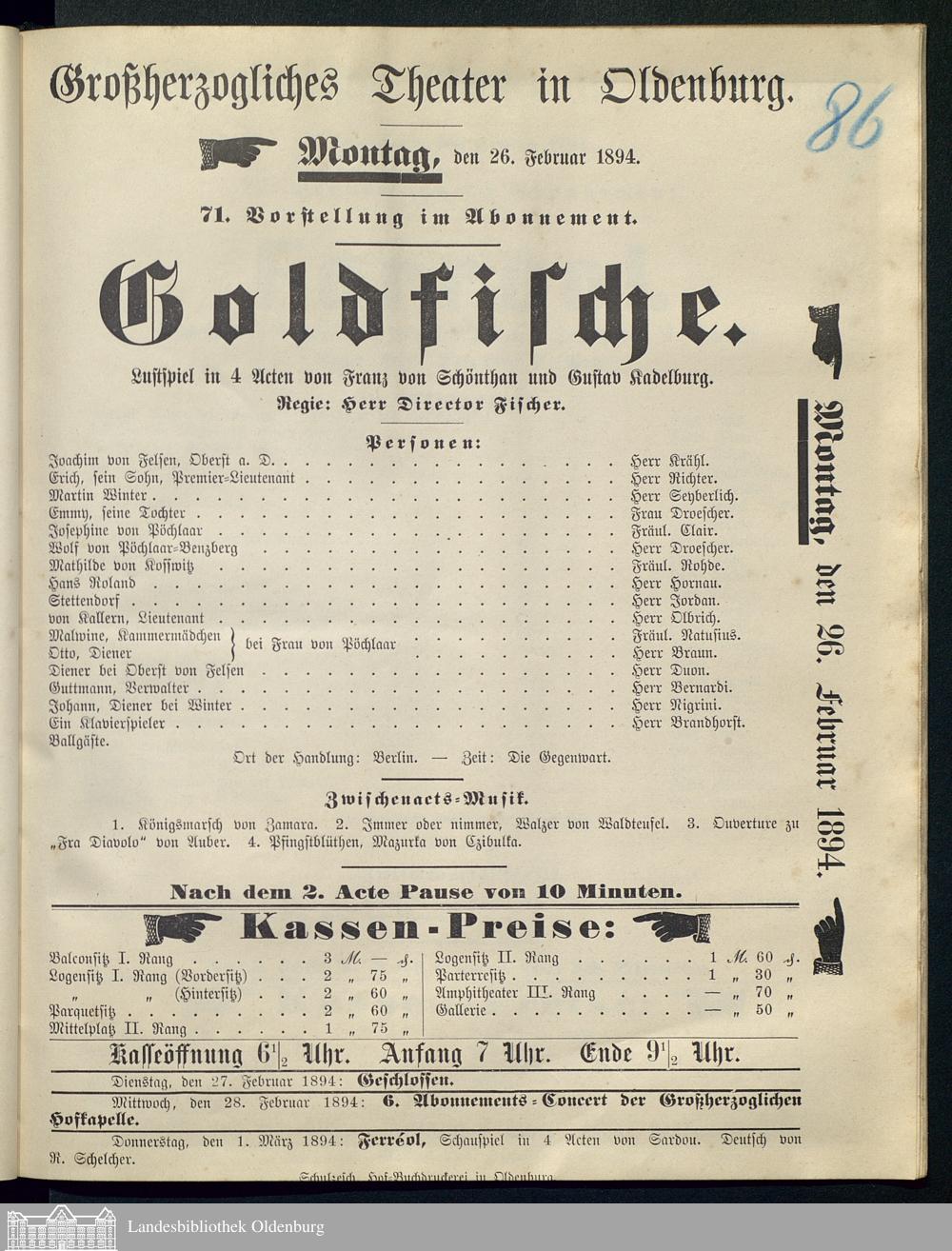 26.02.1894 - Franz von Schönthan und Gustav Kadelburg: Goldfische.