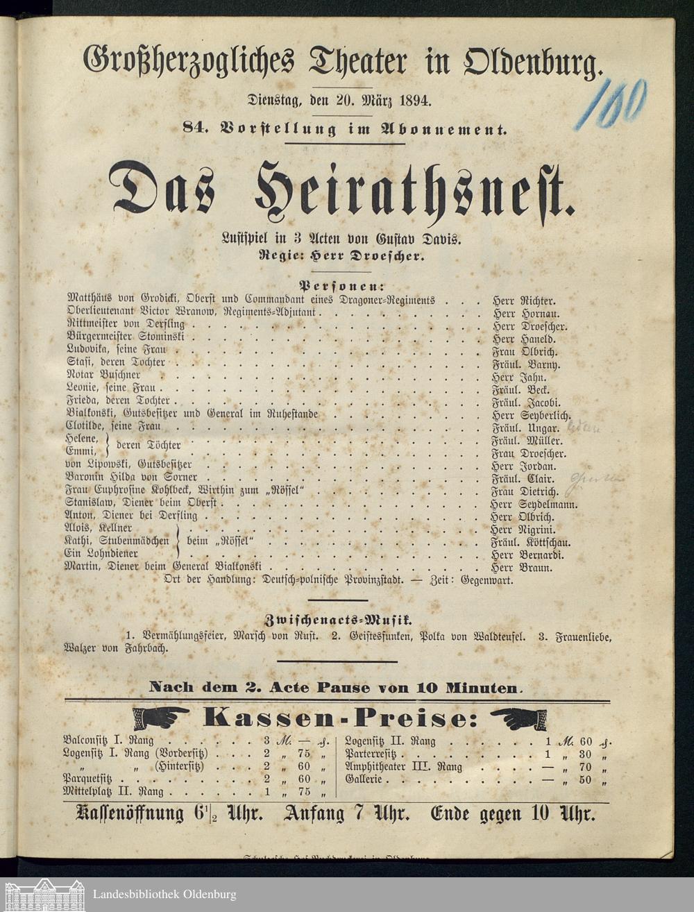 20.03.1894 - Gustav Davis: Das Heirathsnest.