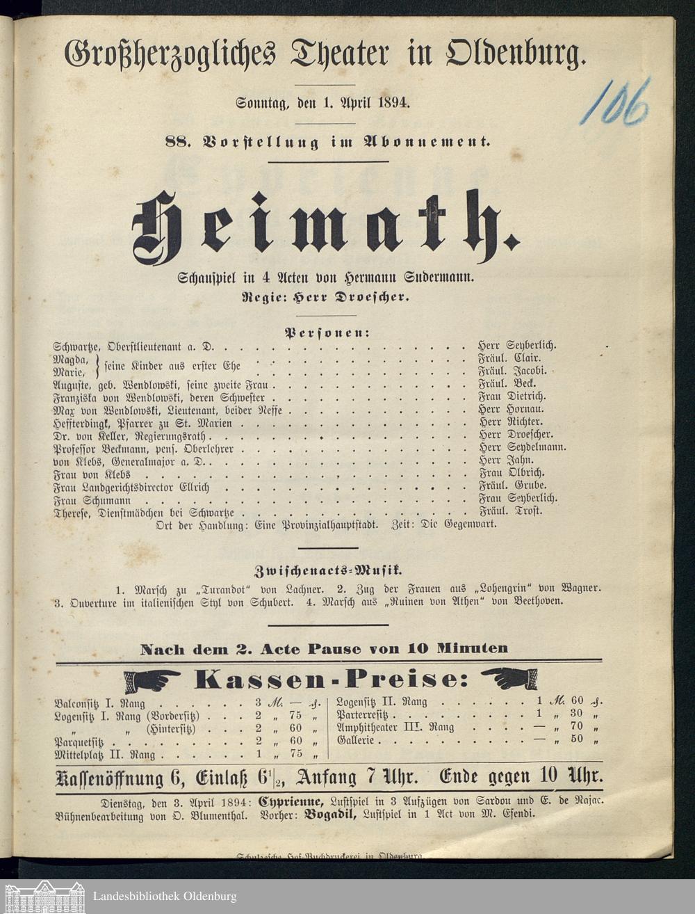 01.04.1894 - Hermann Sudermann: Heimath.