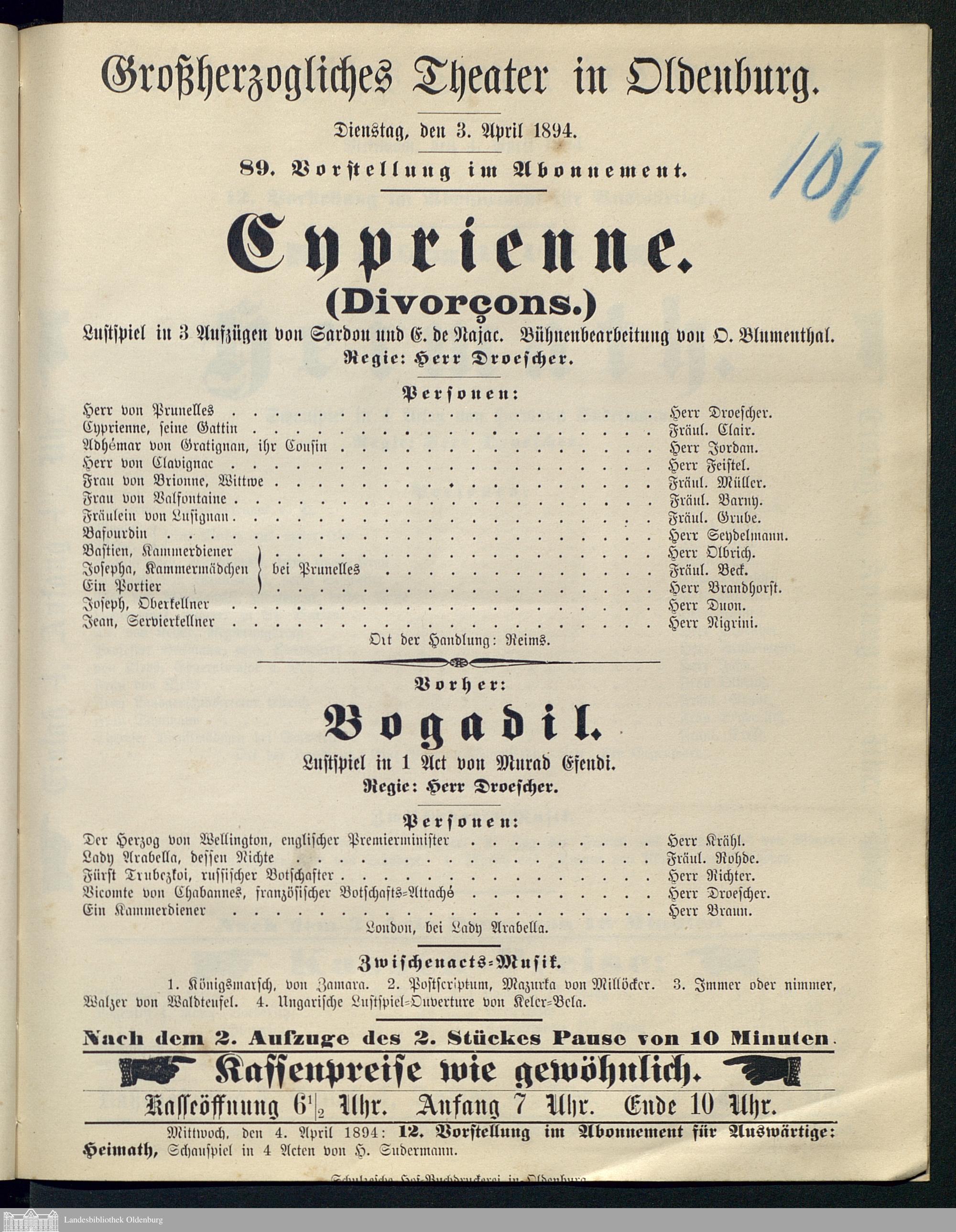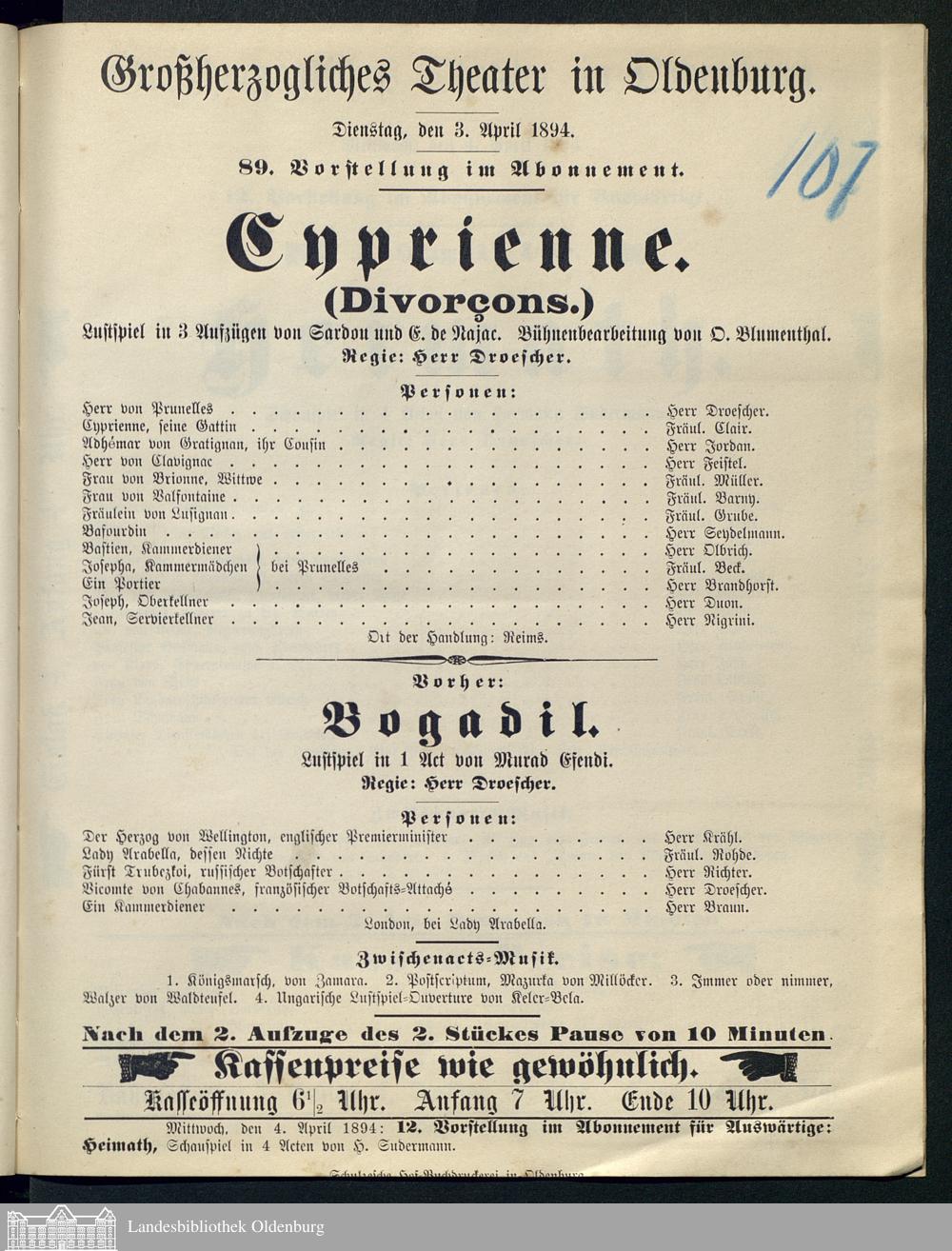 03.04.1894 - Victorien Sardou und Emile de Najac / Oskar Blumenthal (Bearb.): Cy...