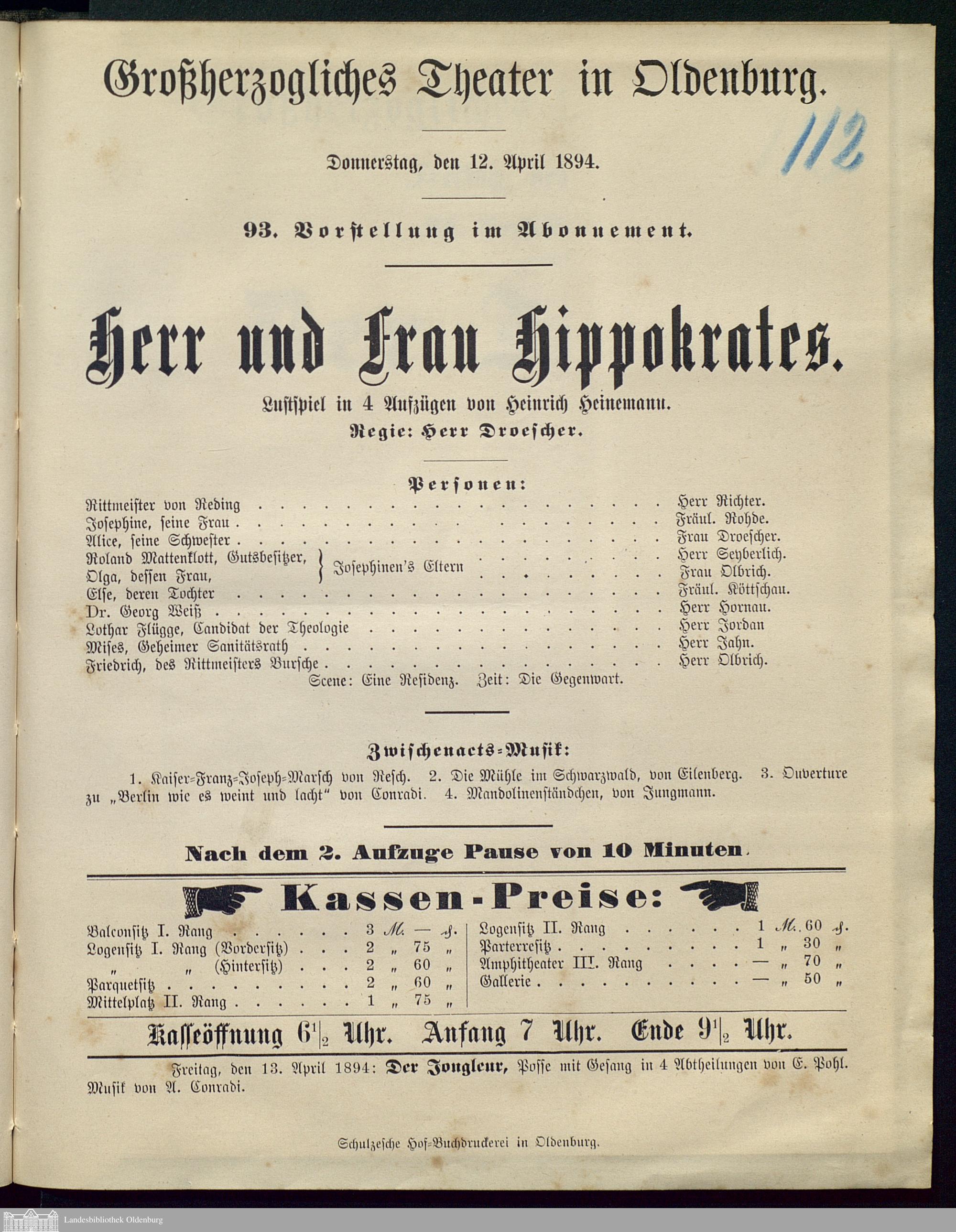 12.04.1894 - Heinrich Heinemann: Herr und Frau Hippokrates.
