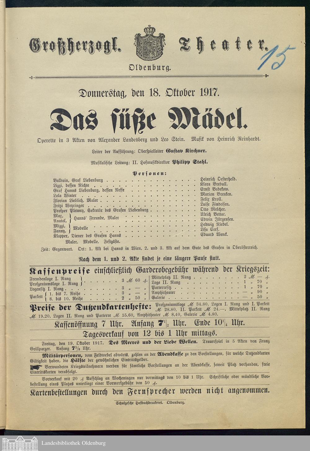 18.10.1917 - Alexander Landesberg und Leo Stein: Das süße Mädel.