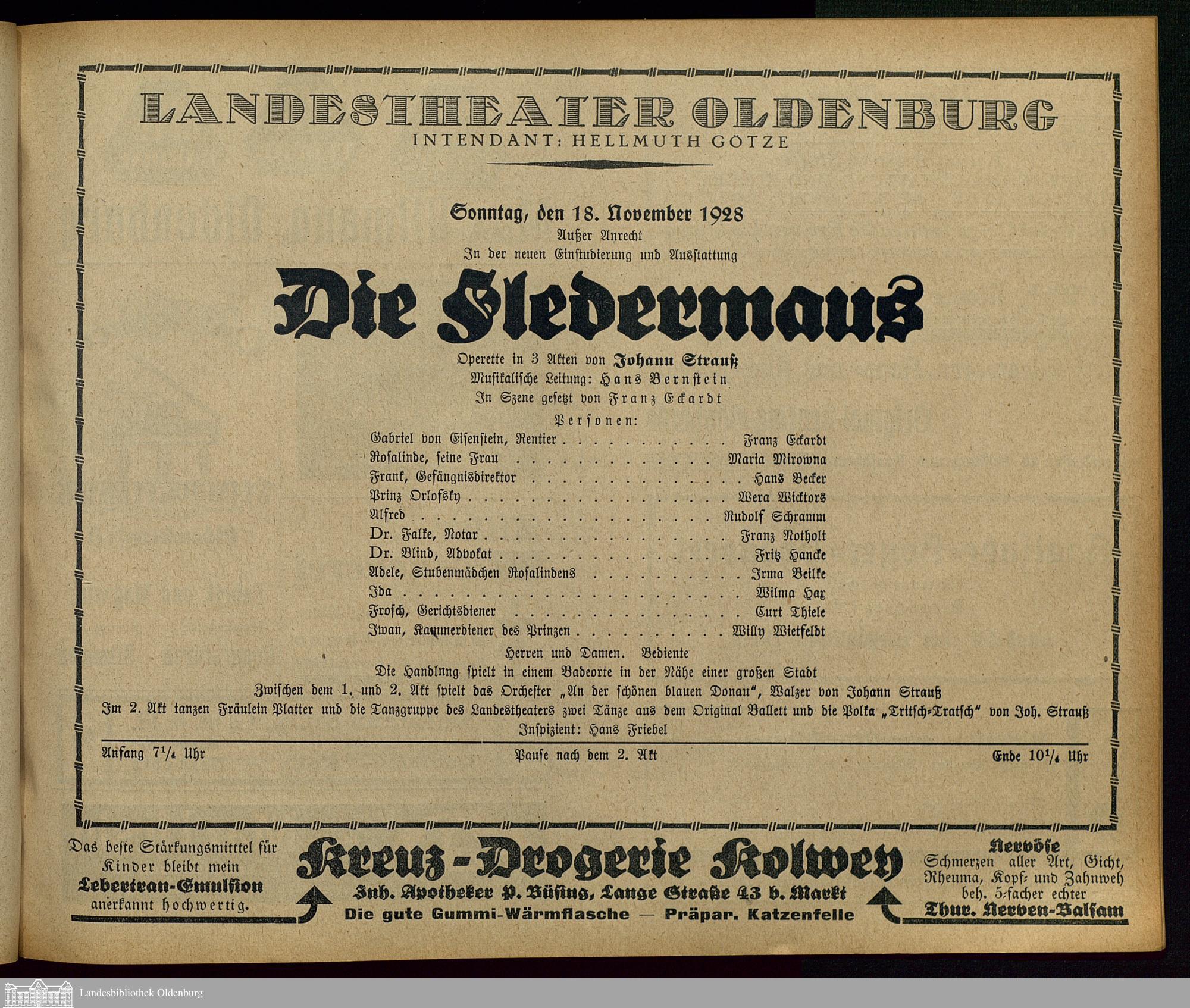18.11.1928 - Johann Strauß: Die Fledermaus.