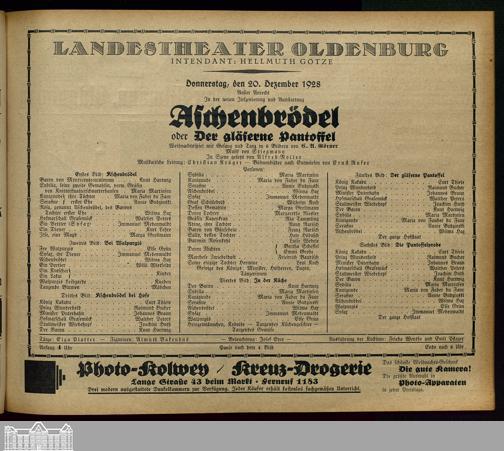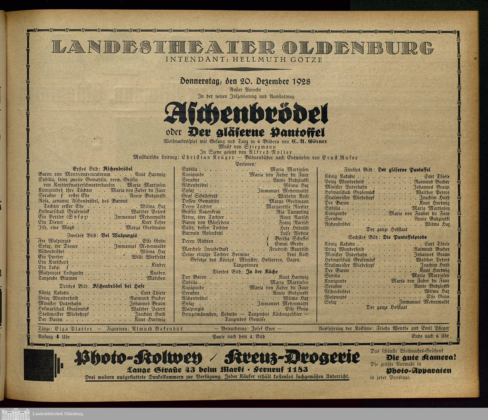 20.12.1928 - Carl August Görner: Aschenbrödel oder: Der gläserne Pantoffel.