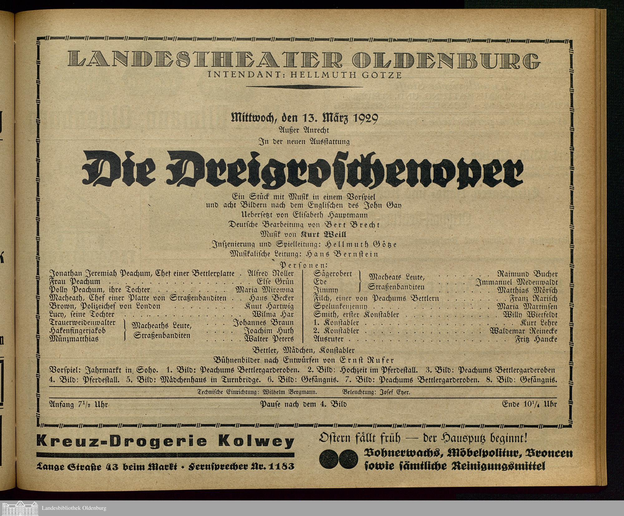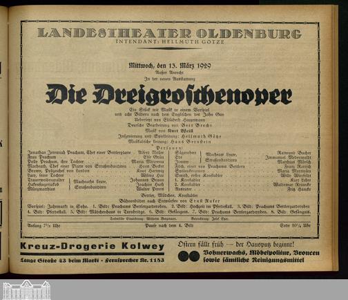 13.03.1929 - John Gay / Elisabeth Hauptmann und Berthold Brecht (Bearb.): Die Dr...