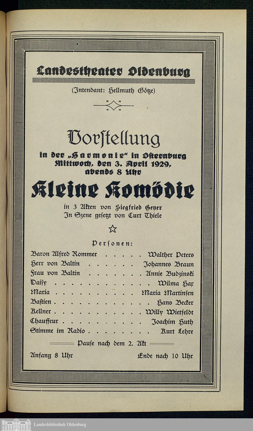 03.04.1929 - Siegfried Geyer [Siegfried Geyerhahn]: Kleine Komödie. [Gastspiel in...