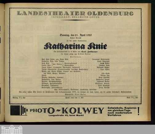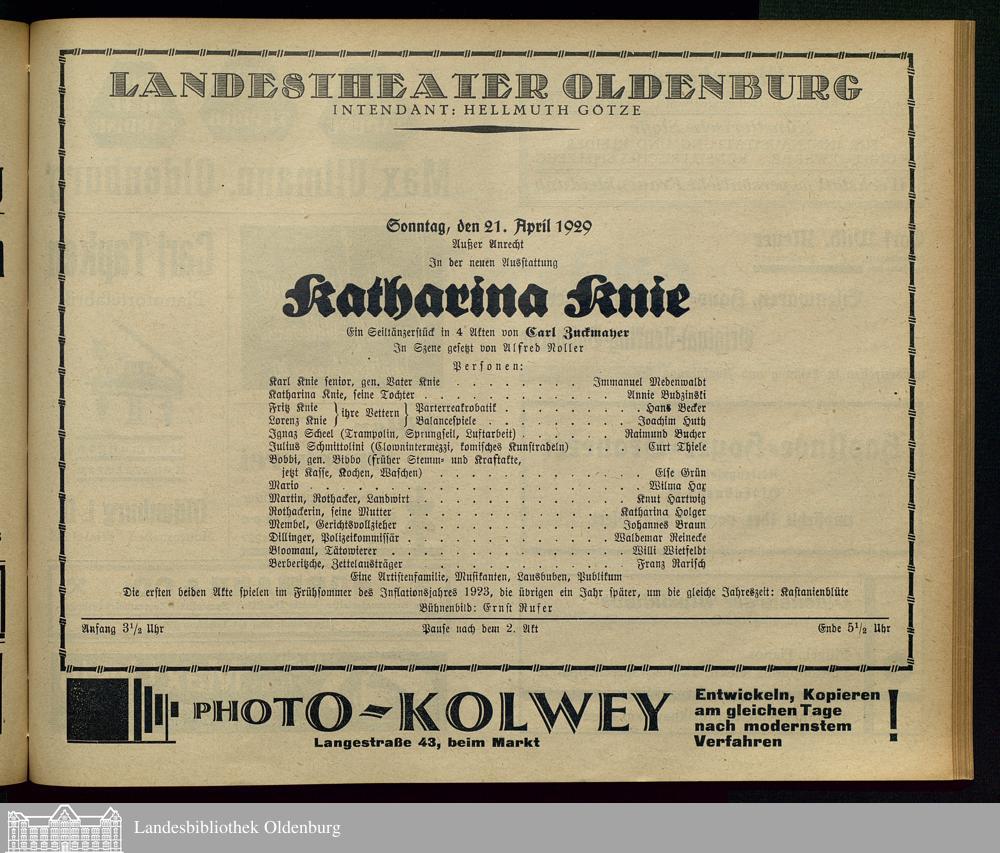 21.04.1929 - Carl Zuckmayer: Katharina Knie.