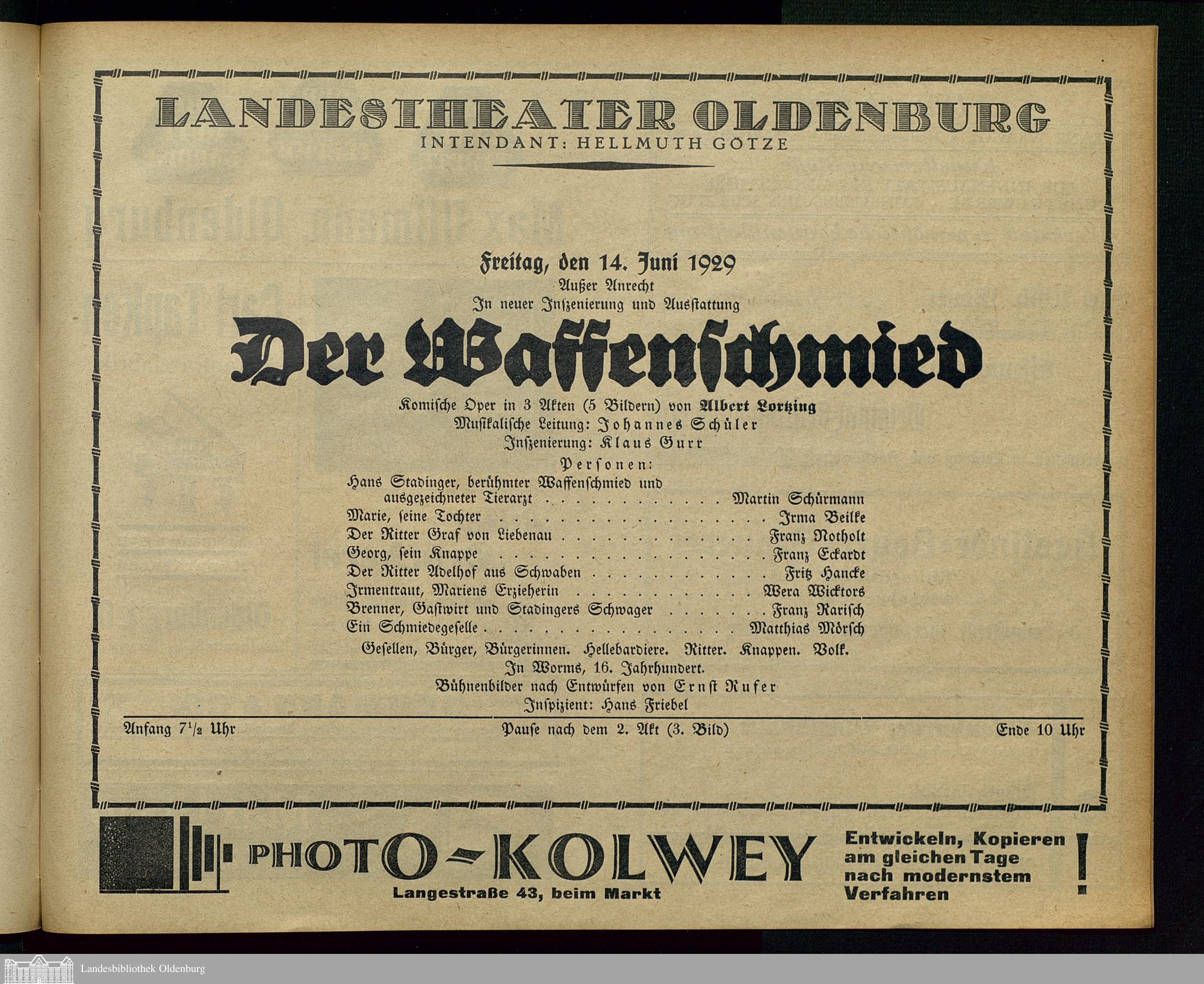 14.06.1929 - Albert Lortzing: Der Waffenschmied.