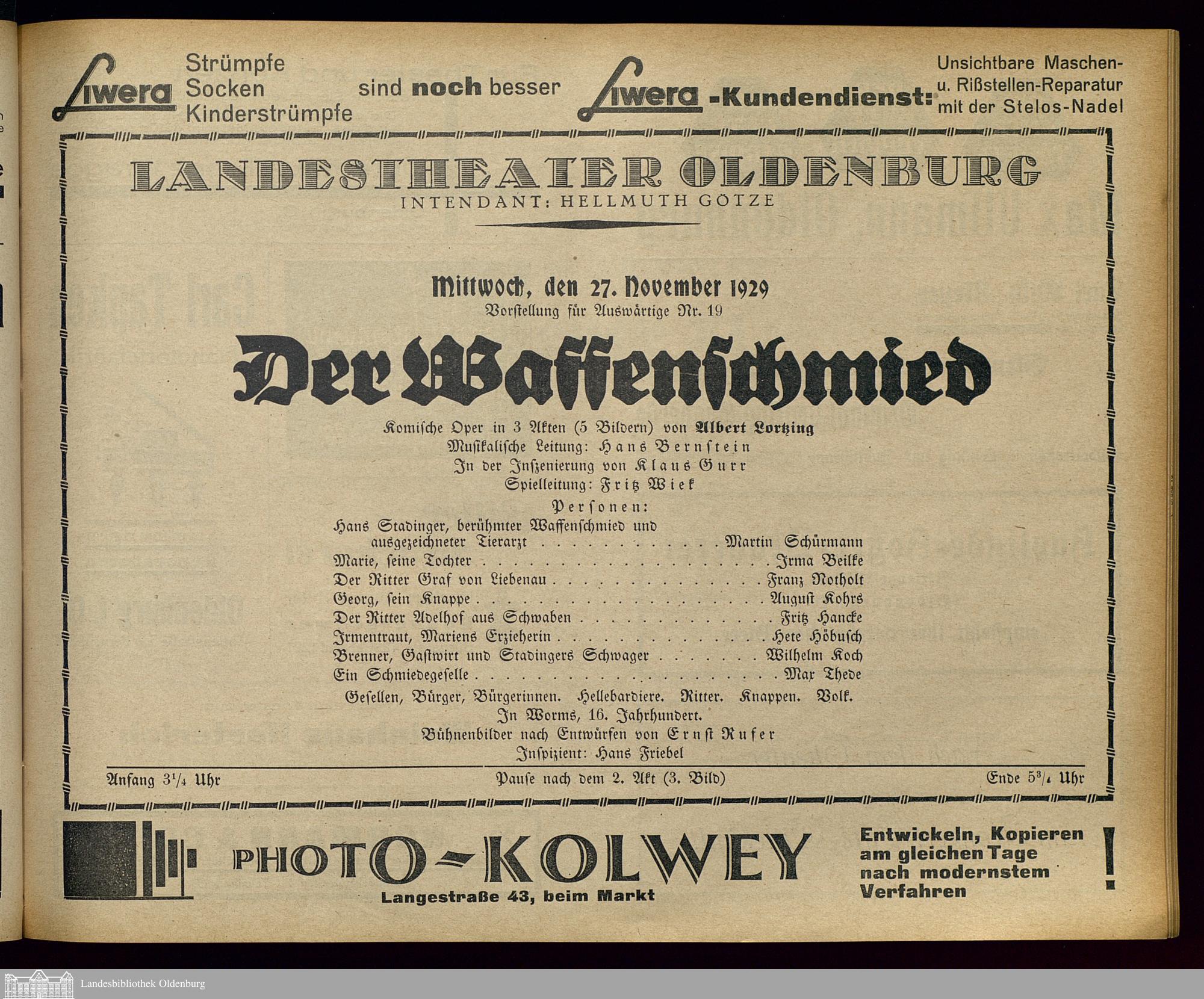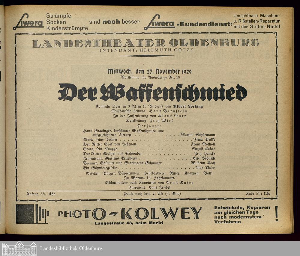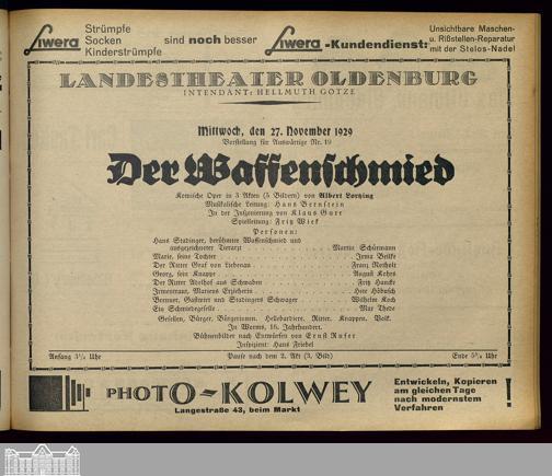 27.11.1929 - Albert Lortzing: Der Waffenschmied.