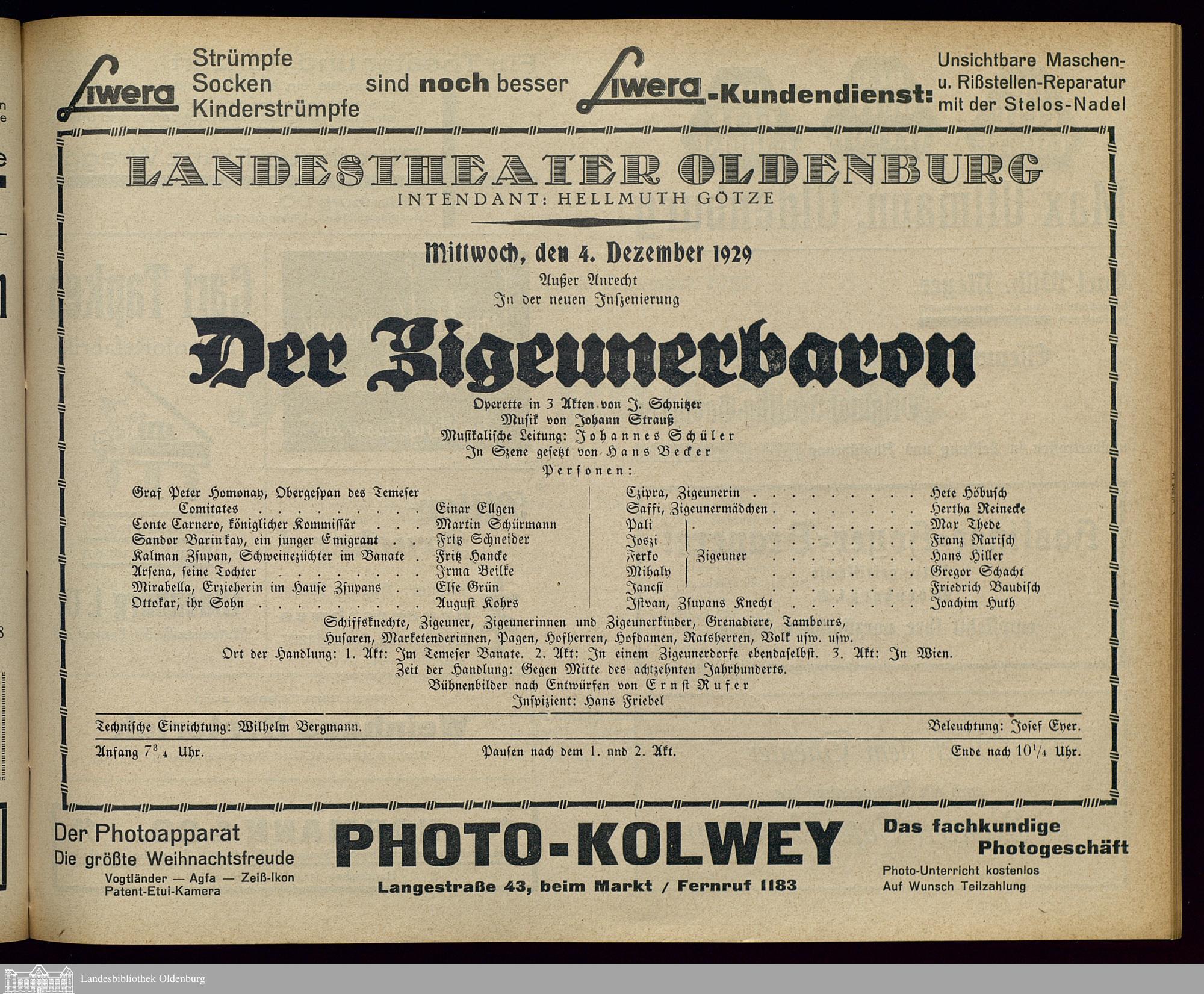 04.12.1929 - Ignaz Schnitzer: Der Zigeunerbaron.