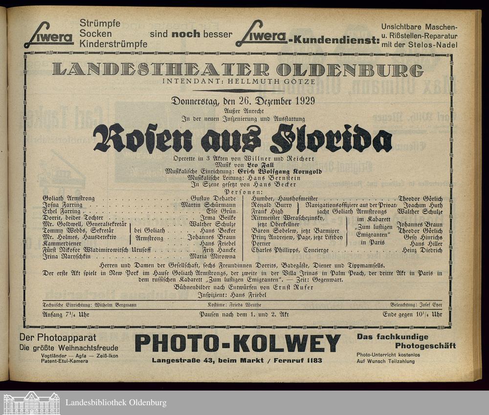 26.12.1929 - Alfred Maria Willner und Heinz Reichert: Rosen aus Florida.