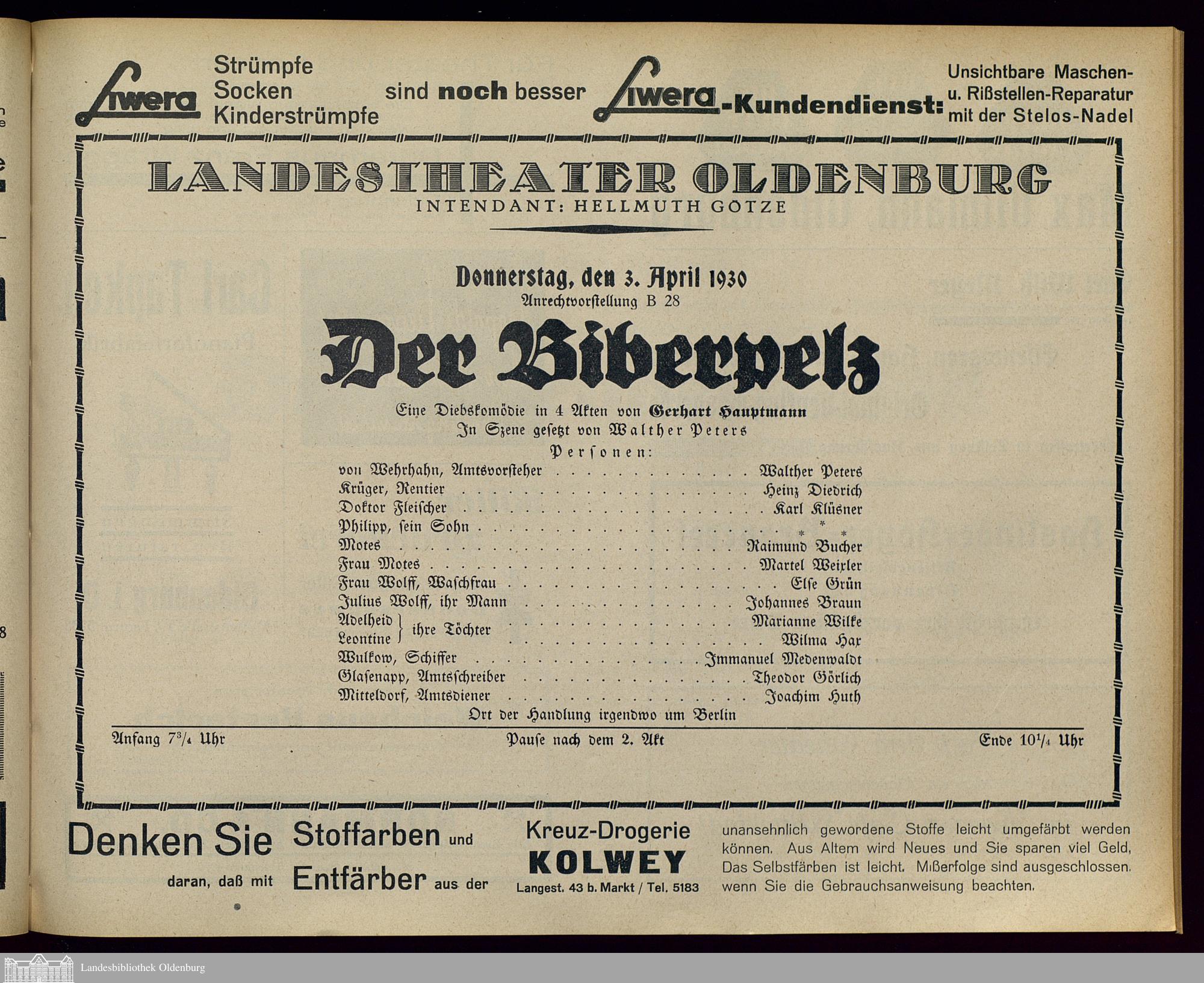 03.04.1930 - Gerhart Hauptmann: Der Biberpelz.
