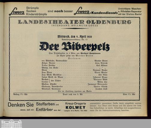 09.04.1930 - Gerhart Hauptmann: Der Biberpelz.