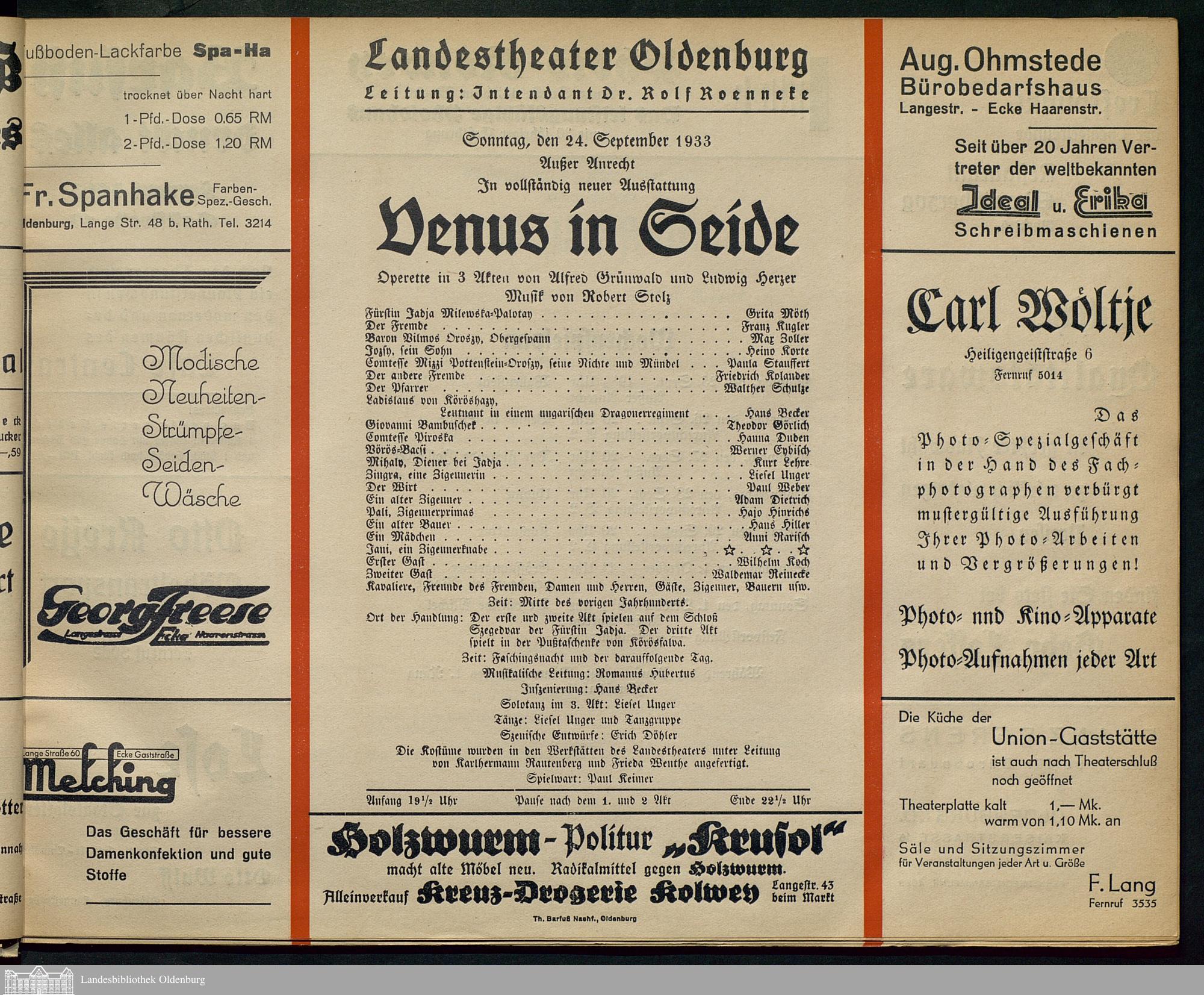 24.09.1933 - Alfred Grünwald und Ludwig Herzer [Ludwig Herzl]: Venus in Seide.
