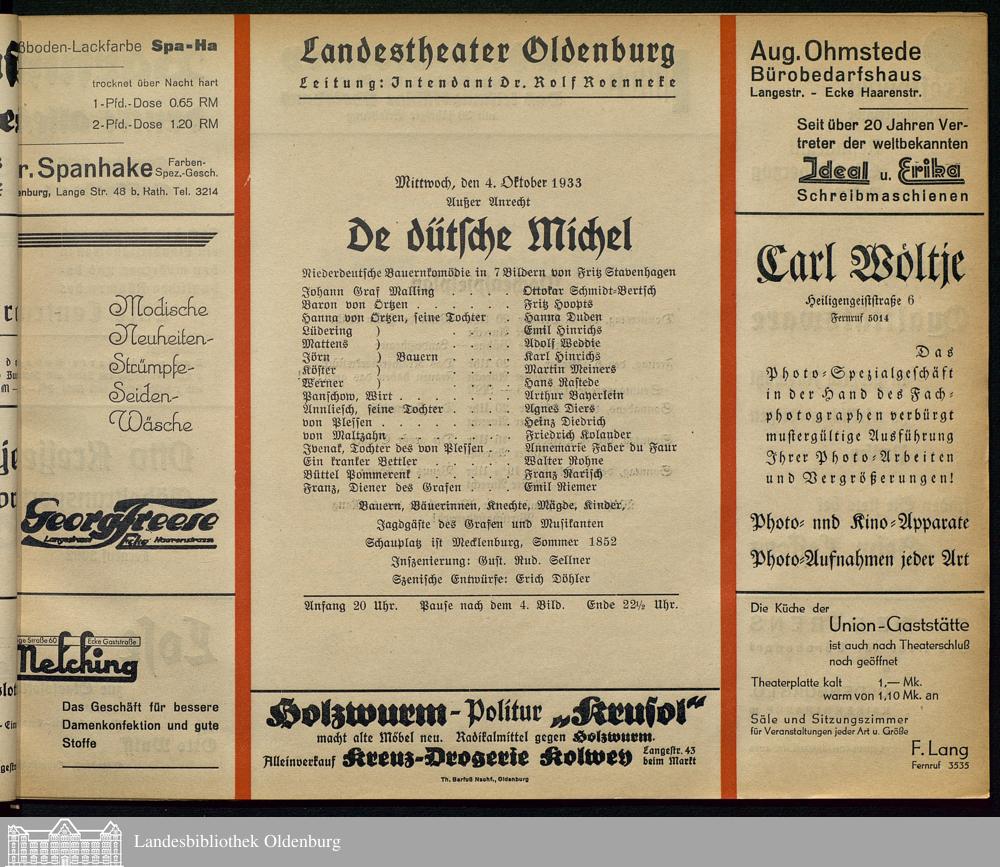 04.10.1933 - Fritz Stavenhagen: De dütsche Michel.