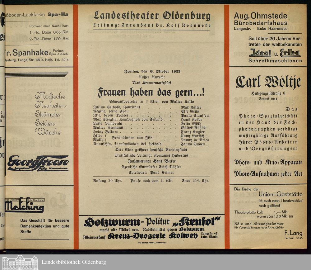 06.10.1933 - Walter Kollo [Walter Kollodzieski]: Frauen haben das gern...!