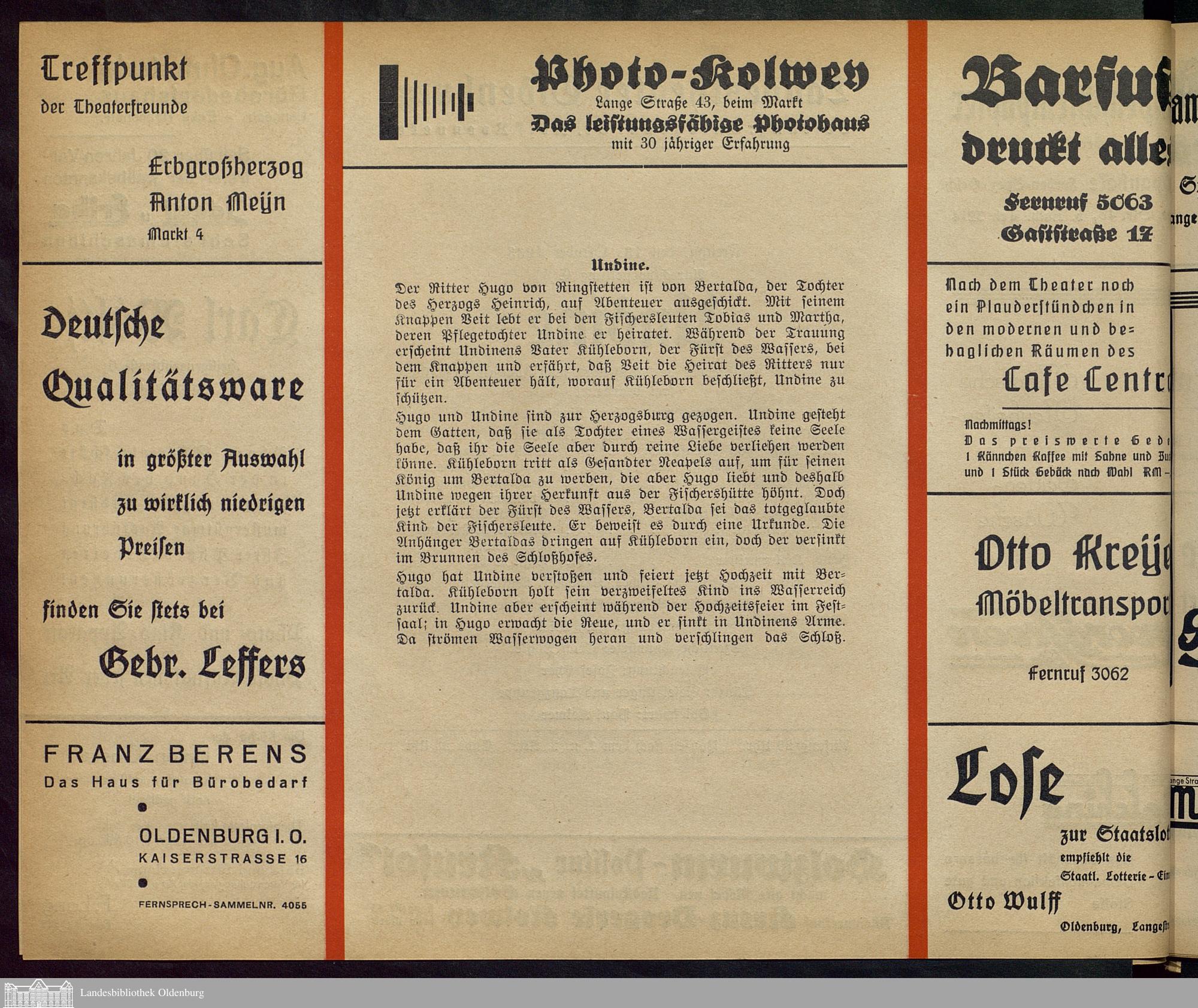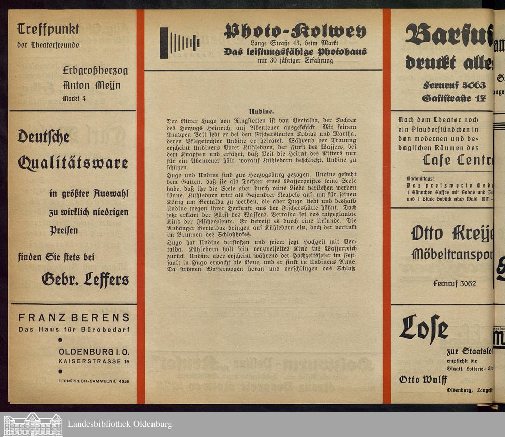 13.10.1933 - Friedrich de La Motte Fouqué: Undine.