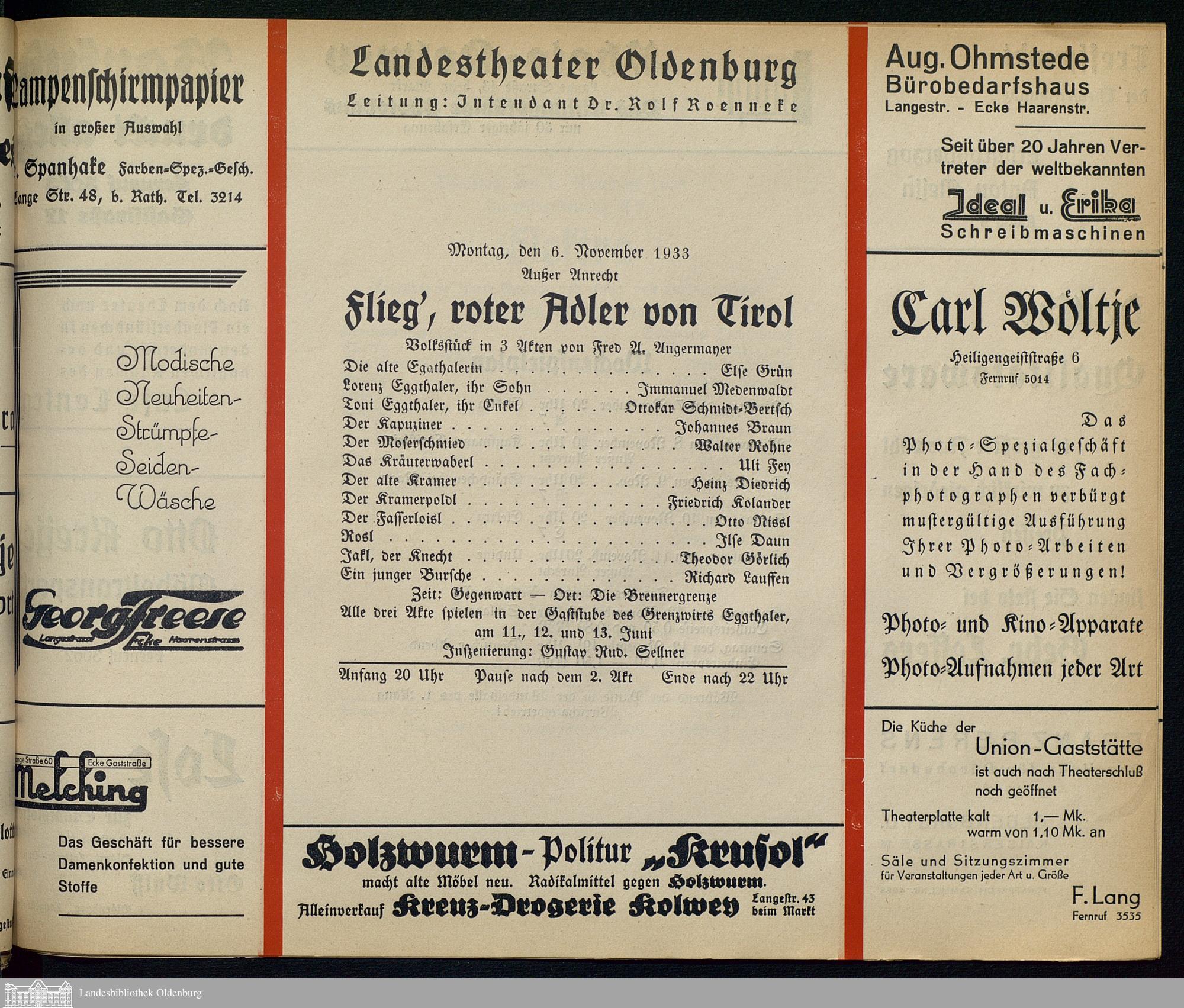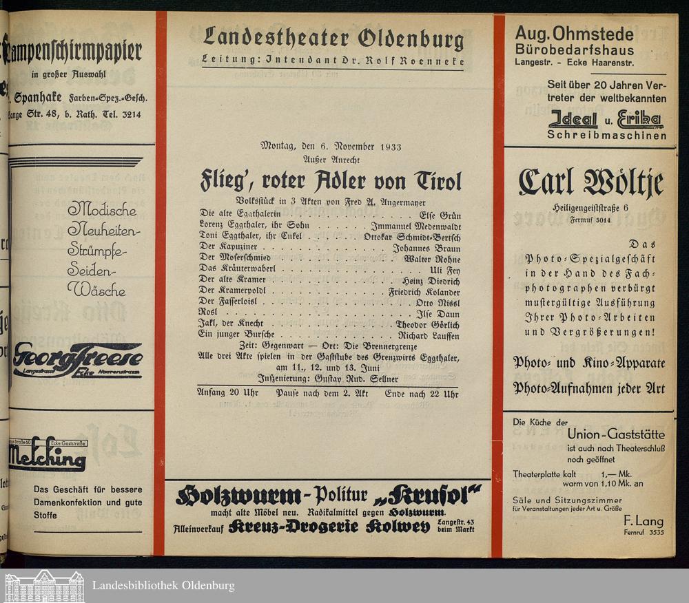 06.11.1933 - Fred Antoine Angermayer: Flieg', roter Adler von Tirol.