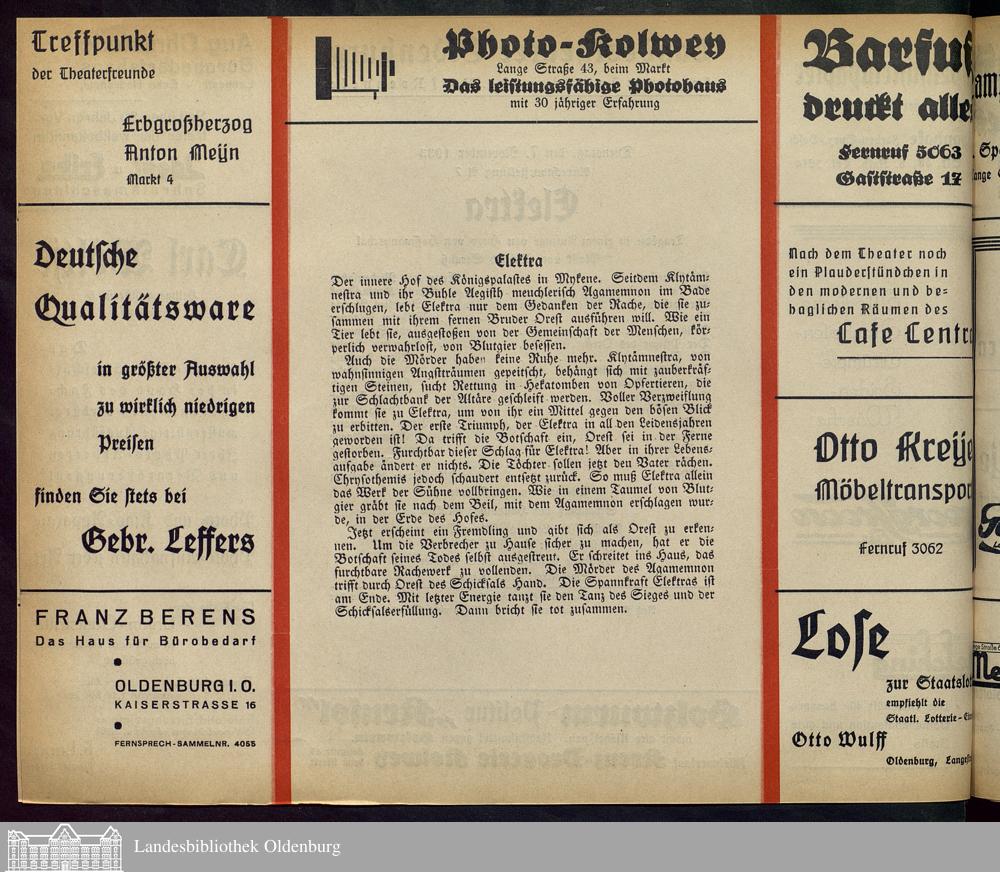 07.11.1933 - Hugo von Hofmannsthal: Elektra.