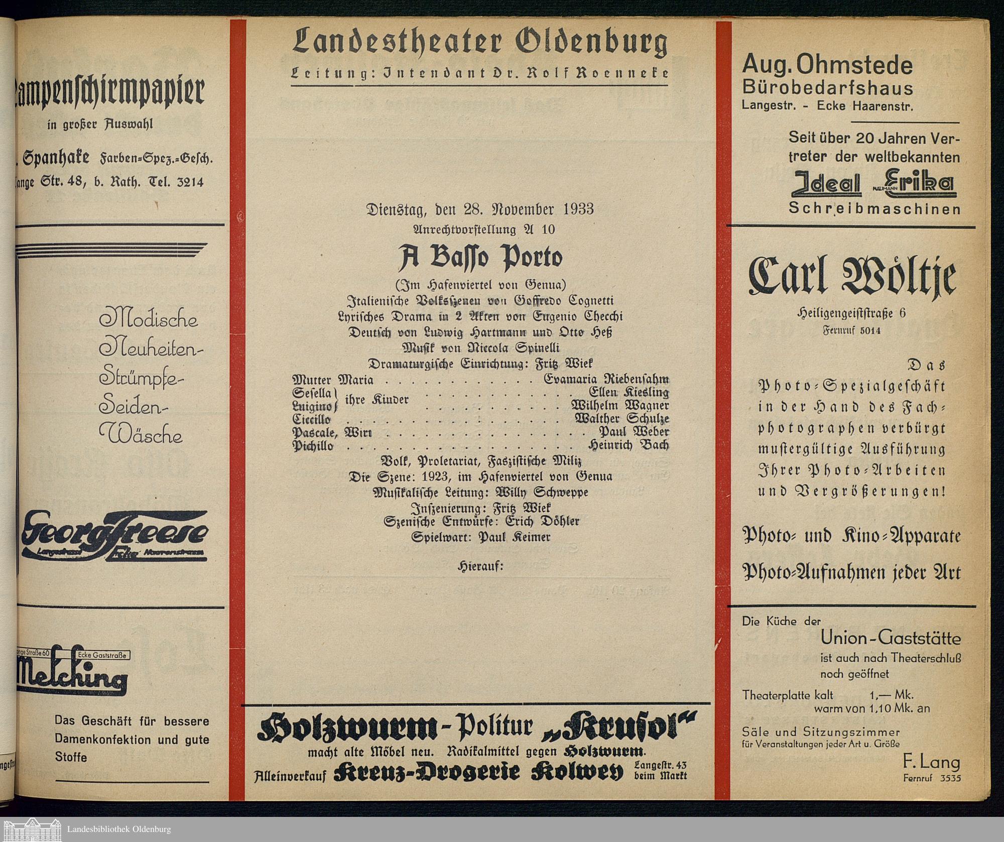 28.11.1933 - Goffredo Cognetti / Ludwig Hartmann und Otto Heß (Bearb.): A Basso ...