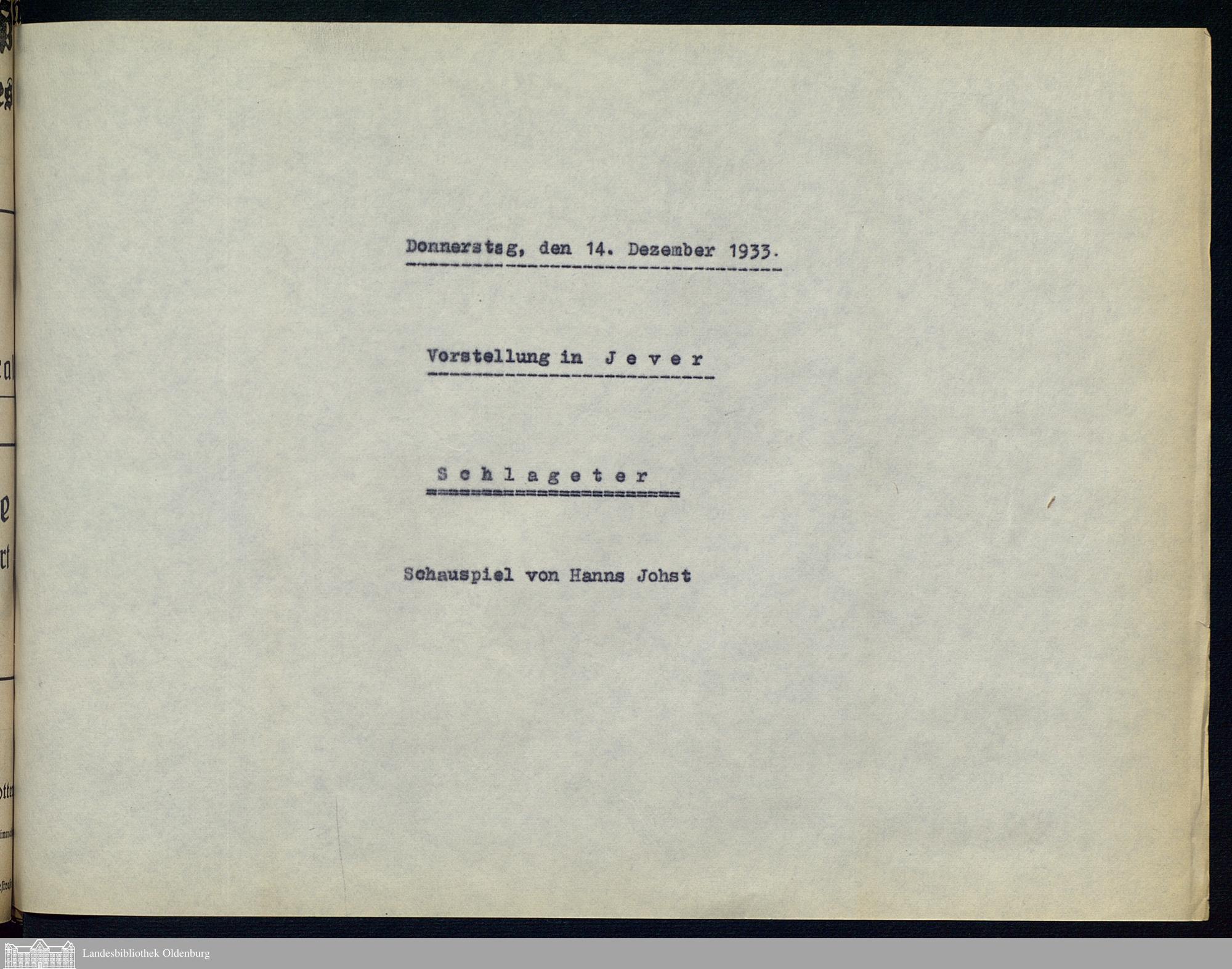 14.12.1933 - Hanns Johst: Schlageter. [Gastspiel in Jever]