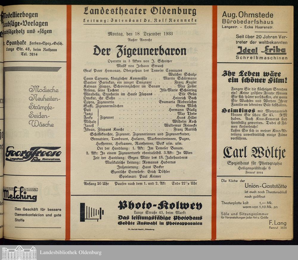 18.12.1933 - Ignaz Schnitzer: Der Zigeunerbaron.