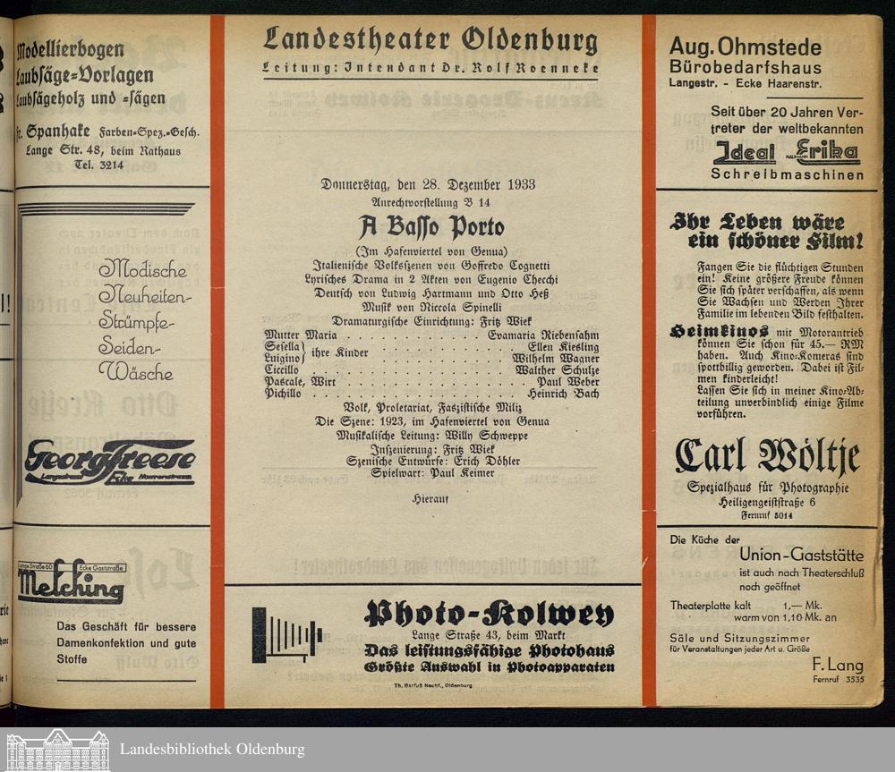 28.12.1933 - Goffredo Cognetti / Ludwig Hartmann und Otto Heß (Bearb.): A Basso ...